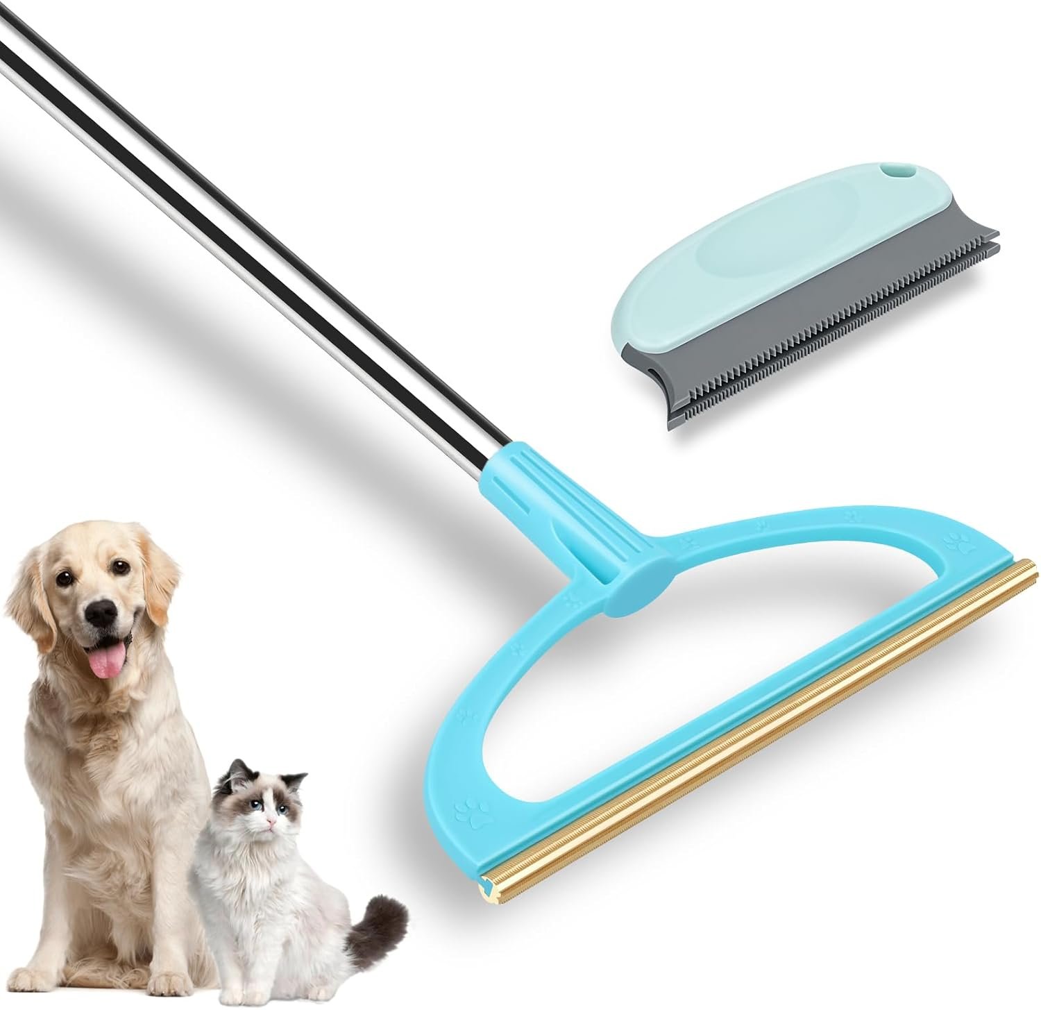 By choosing us, let you have 2 types of aizal pet hair remover tools at a time, you will receive an adjustable long handle carpet rake for pet hair removal and a mini pet hair remover for car or sofa. Effectively Solve All of Your Pet Hair Problem!