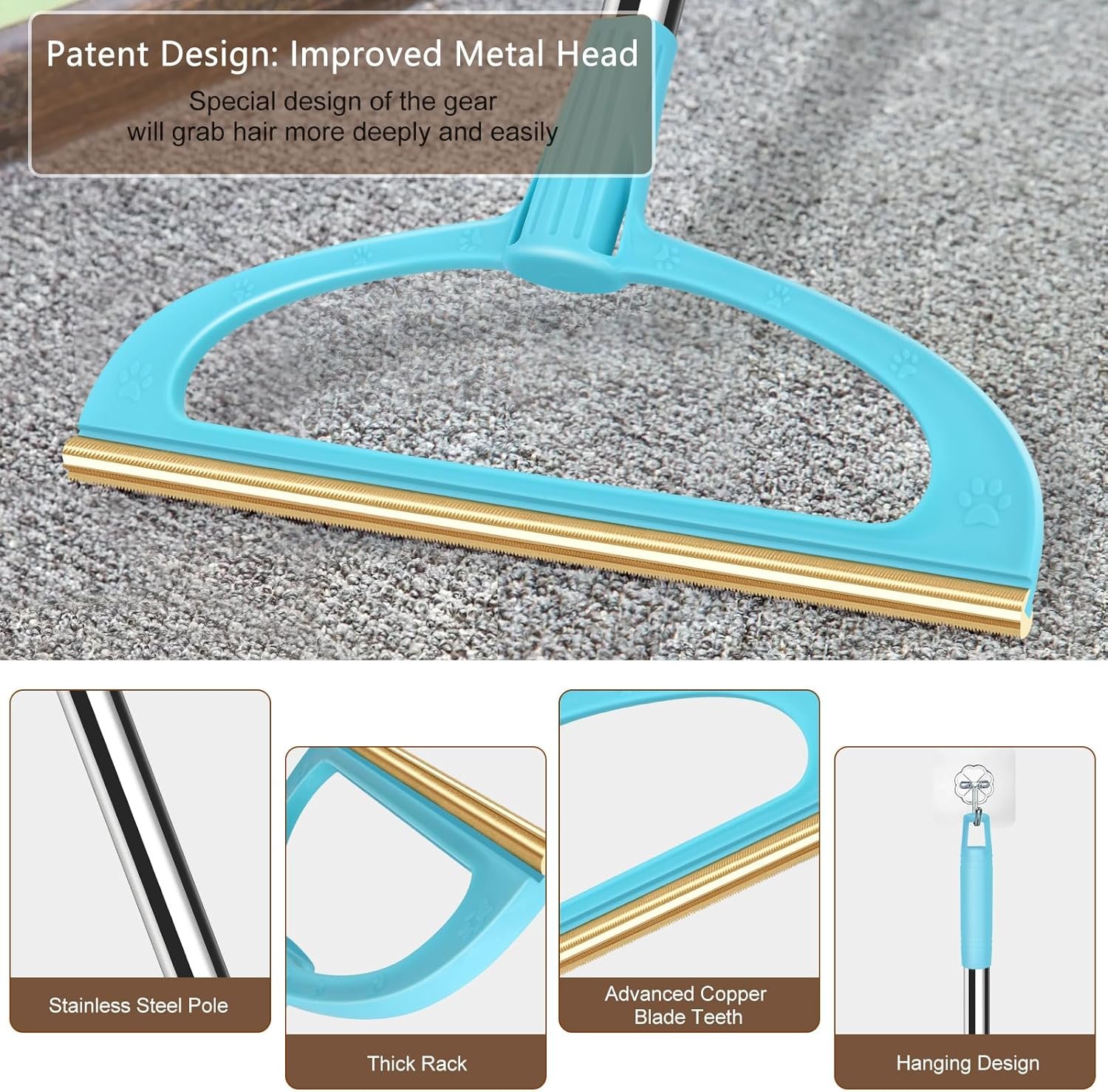AIZAL CARPET RAKE FOR PET HAIR REMOVAL, EFFECTIVELY REMOVE DOG/CAT HAIR FROM CARPETS!