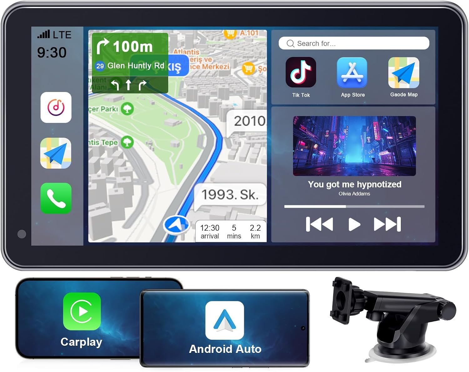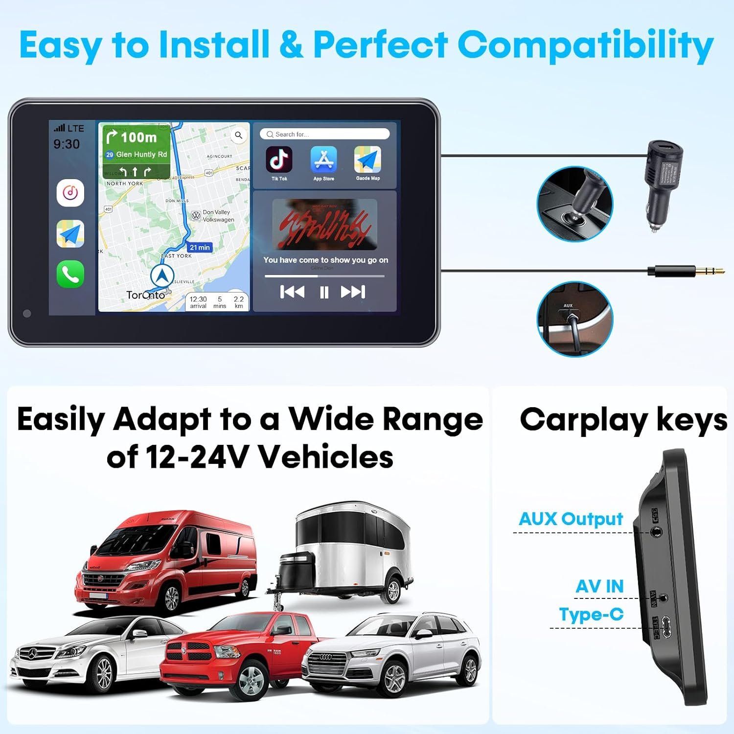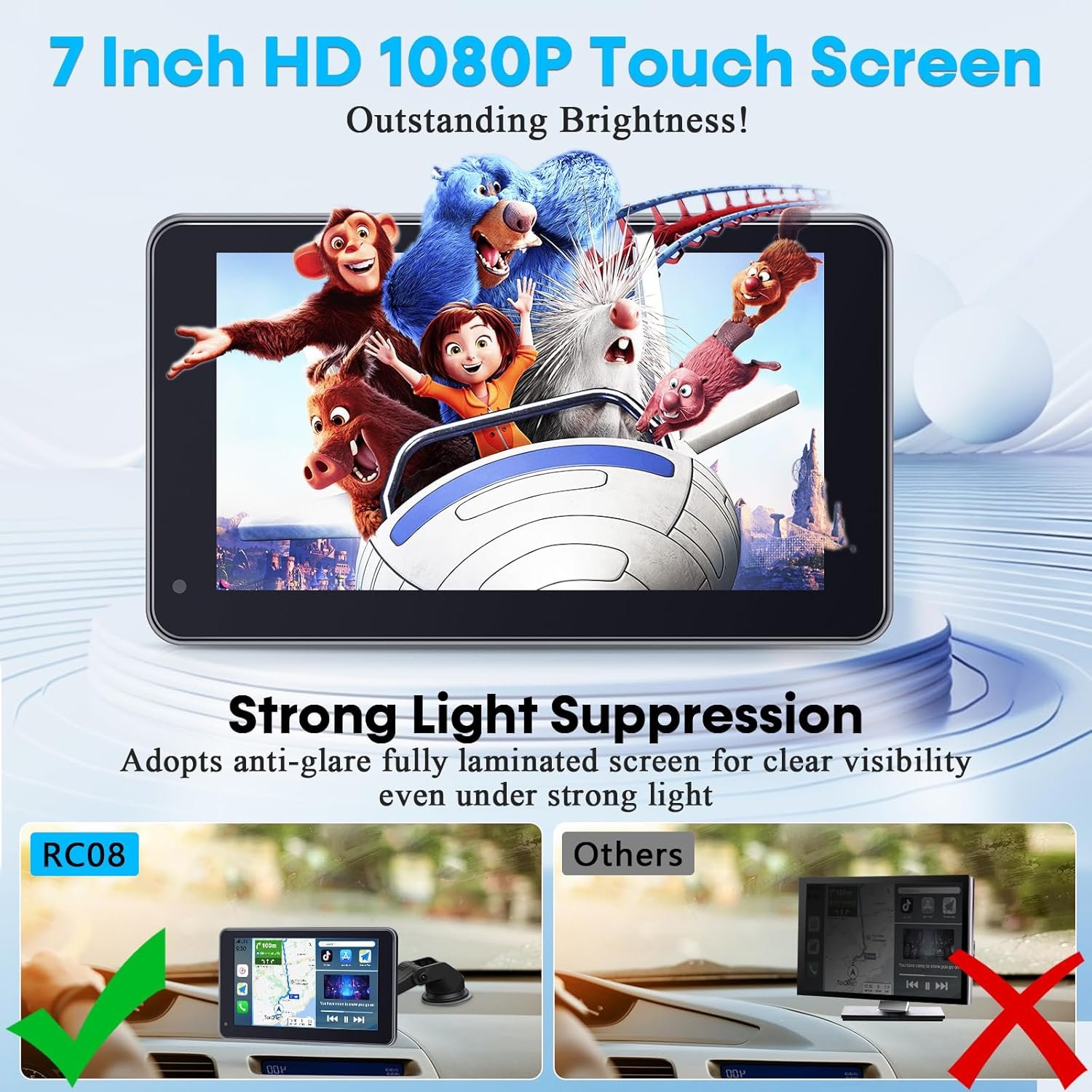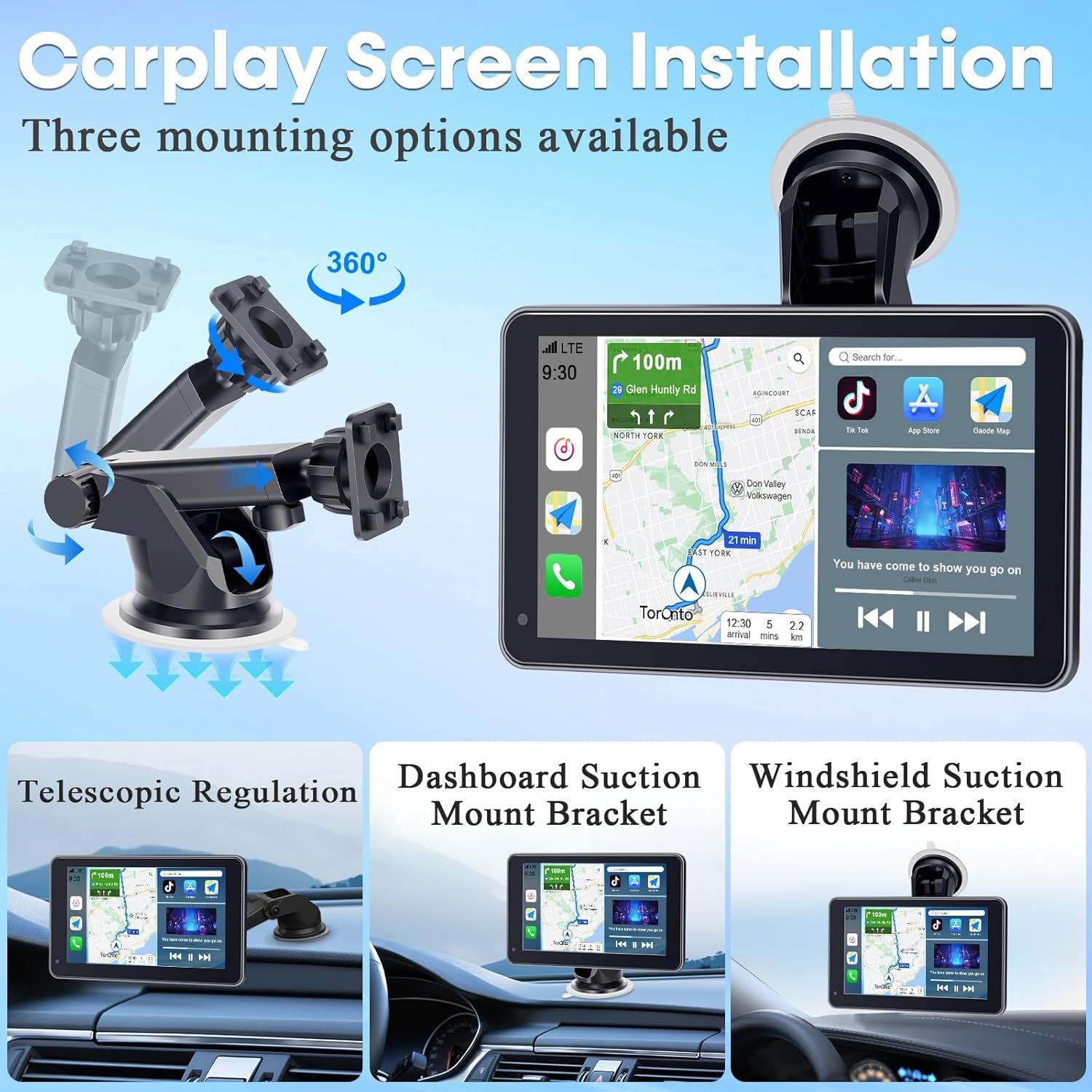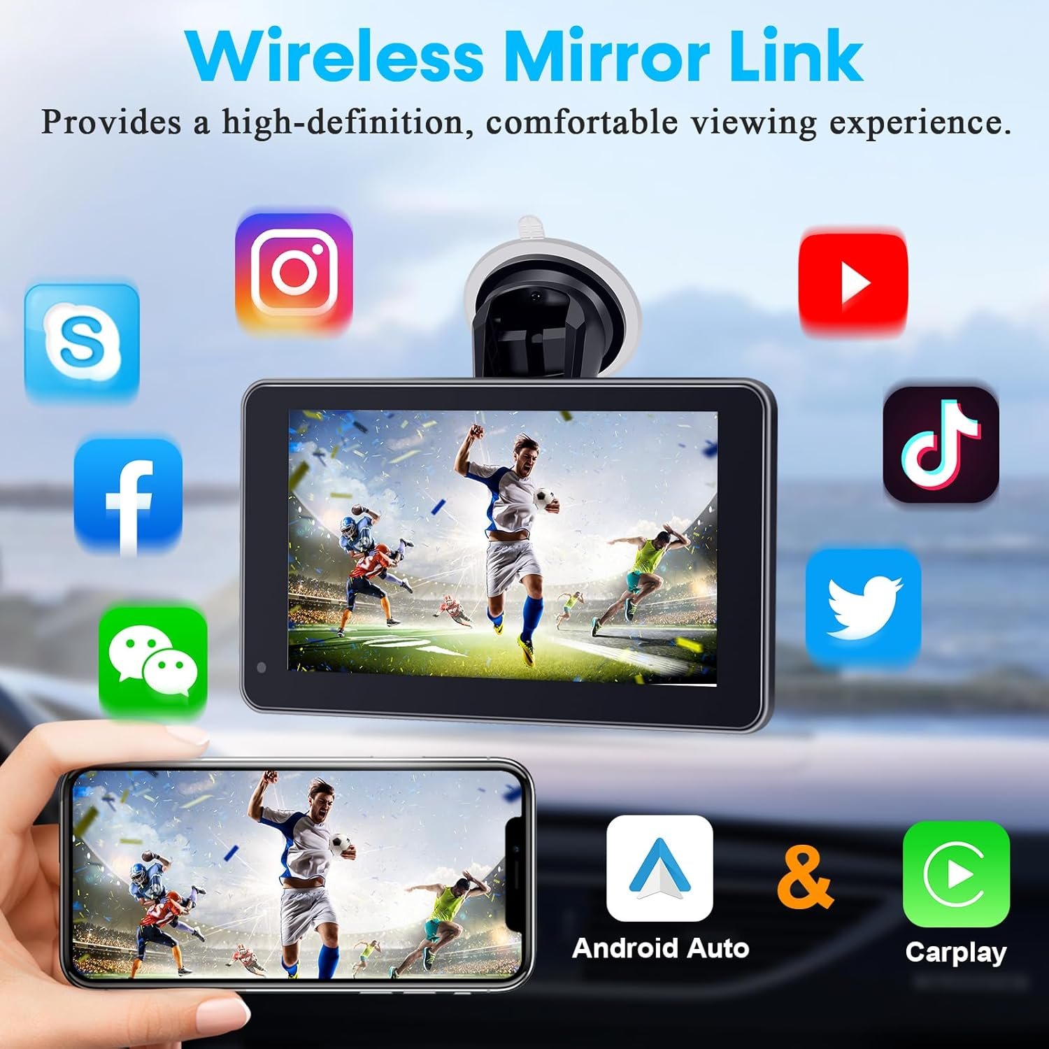 Carplay for Apple Portable Car Screen: Easy Setup 7 Inch Android Auto – Wireless Car Play Touchscreen with GPS Navigation,Bluetooth, FM,Mirror Link,Siri