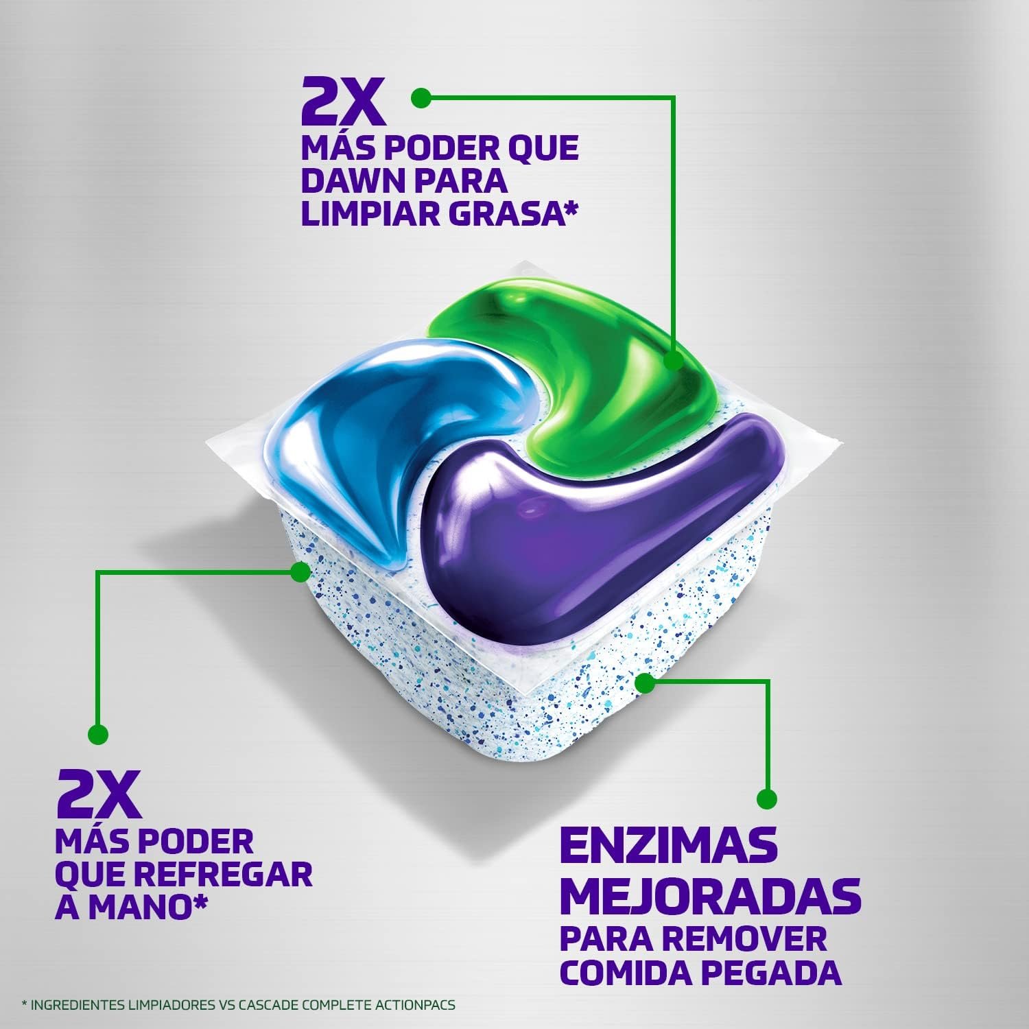 Cascade Platinum ActionPacs dishwasher detergent cleans burnt-on messes in just one wash, with no pre-wash needed. That’s because the pod dissolves fast to start cleaning right away, releasing the soaking power of Dawn dishwashing liquid, while food-seeking enzymes latch on and break down food into particles so small they can flow right down the drain. It’s so powerful it even works in the Quick Wash cycle. Plus, Cascade Platinum dishwashing detergent is formulated to help prevent hard water filming, keeping your machine looking fresh and clean. Simply pop in an ActionPac and reveal a Platinum sparkle. Save up to 20 gallons of water per dishwasher load when you skip the pre-wash and run your dishwasher with Cascade Platinum. #1 Recommended Brand in North America* *More dishwasher brands in North America recommend Cascade vs. any other automatic dishwashing detergent brand, recommendations as part of co-marketing agreements.