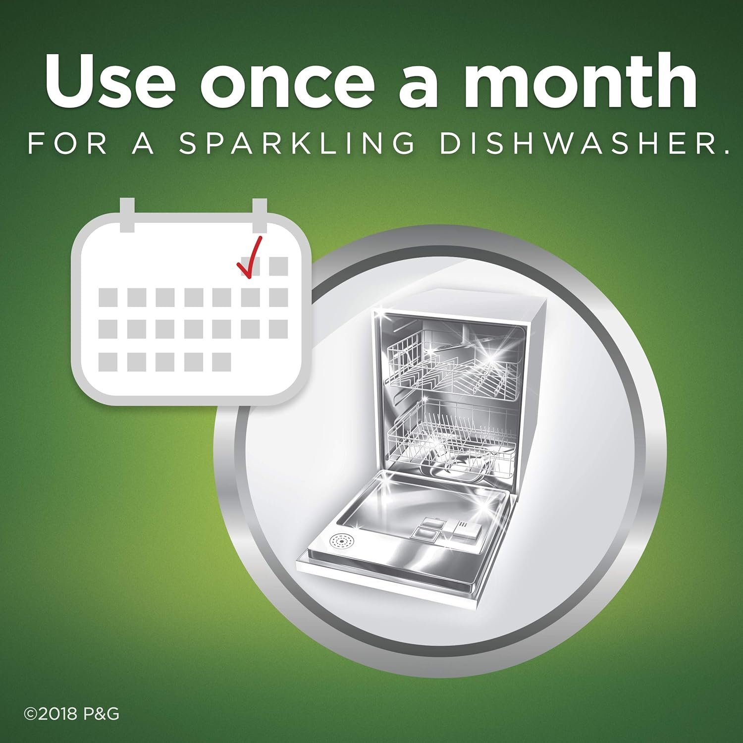 Remove limescale buildup, grease, and odors from your dishwasher with Cascade Dishwasher Cleaner. Cycle after cycle, your machine can develop unsightly deposits, buildup, and odors. Cascade Dishwasher Cleaner helps eliminate odors and break through the buildup to reveal a fresher, cleaner machine. Recommended for use once a month, Cascade Dishwasher Cleaner comes in easy-to-use, single-dose packs. Simply toss one in and run a cycle to keep your machine as fresh as it should be.