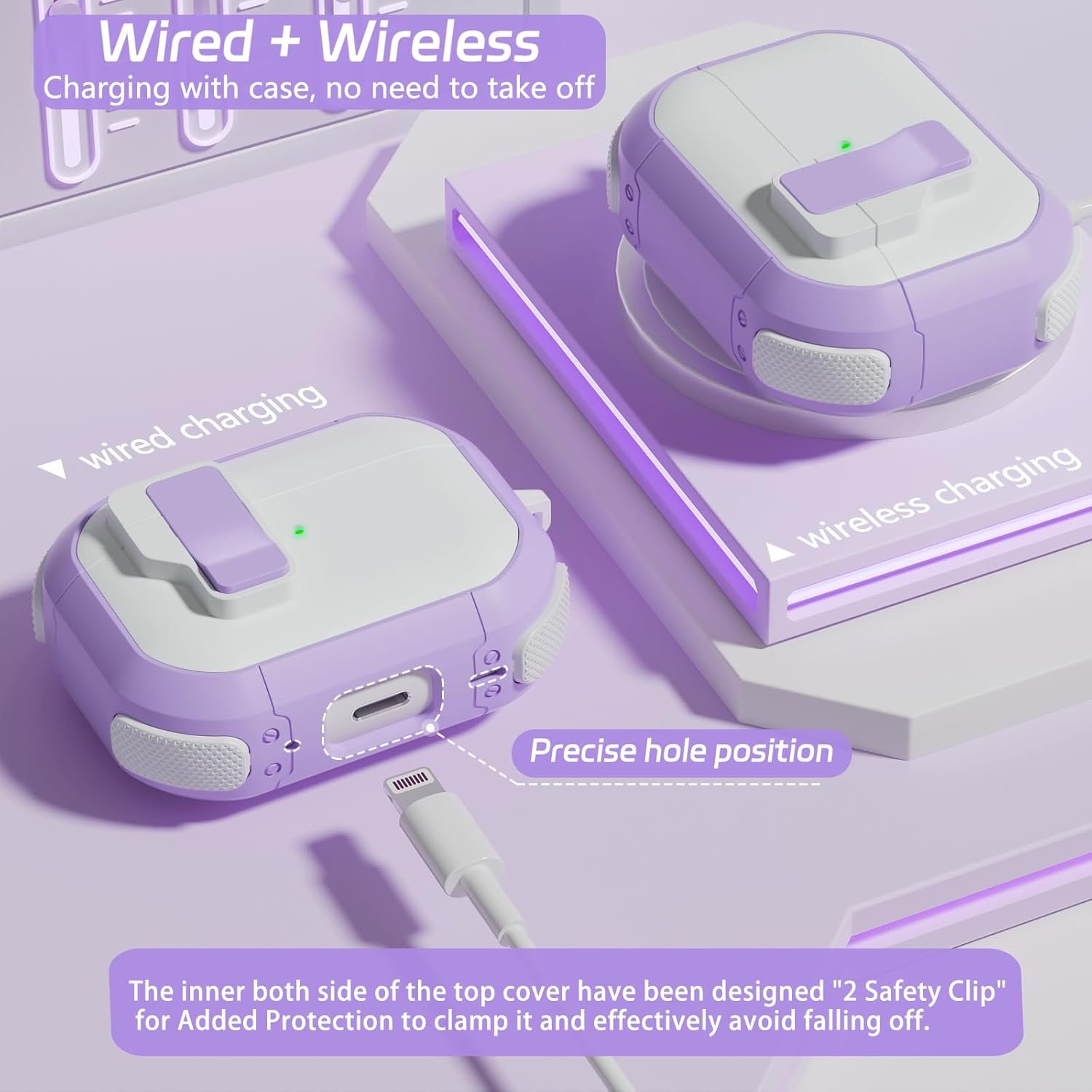 【SAFETY AT ITS BEST:Secure Lock Design】: For adding security, this clear case for Airpods adopts a split structure 2 pieces design and the Secure Lock provides an ‘Extra Layer of Security’, preventing the AirPods from accidentally popping open if dropped. This is particularly useful for those who carry their AirPods in bags or pockets, where accidental openings are more likely. The inner both side of the top cover have been designed “2 Safety Clip” for Added Protection in order to clamp it and effective avoid falling out. keeping the case securely closed, ensuring your AirPods stay protected at all times.