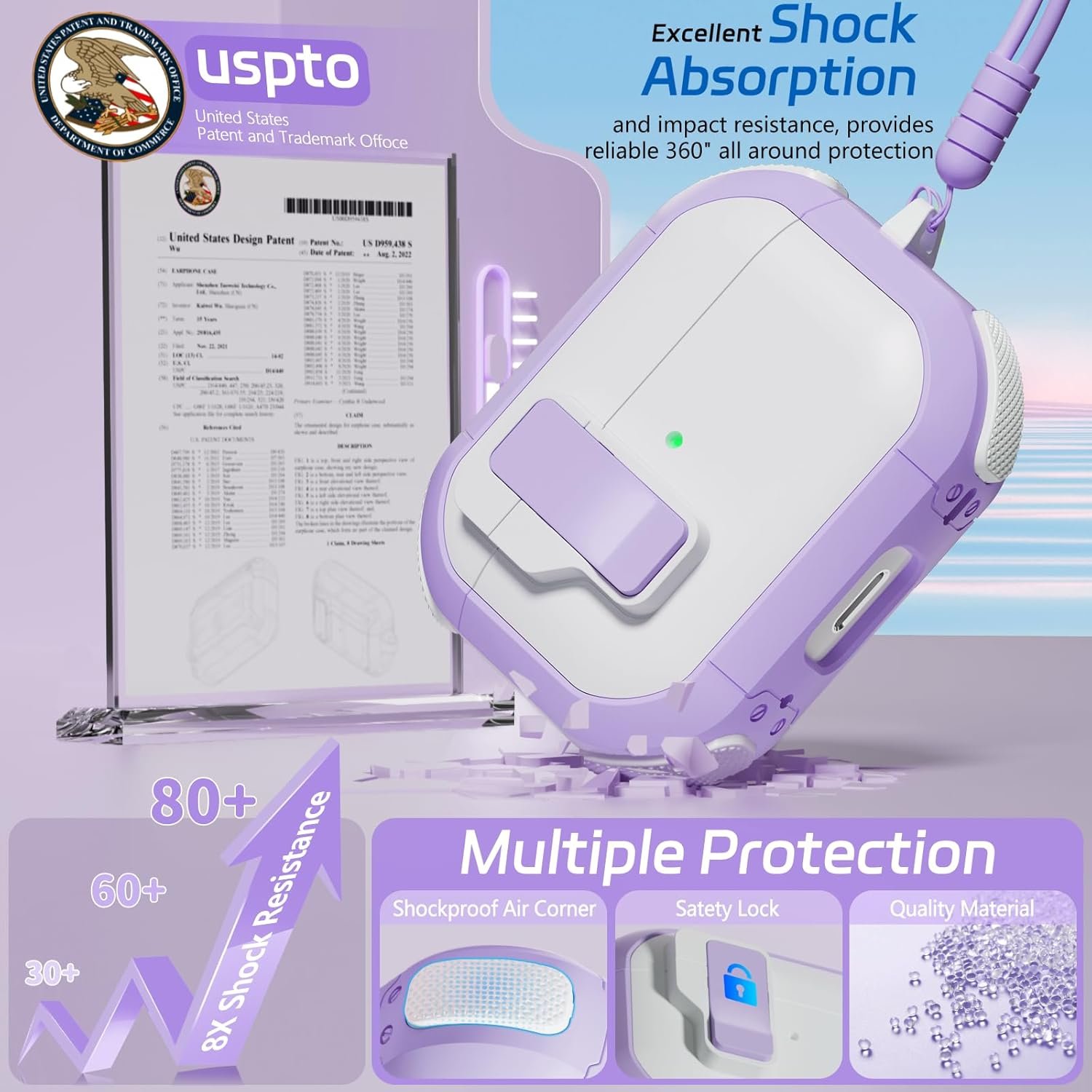 【Military-grade Protection & Scratch-Resistant】Ekoonpft’s secure lock case is made from imported premium PC material, which is 5 Times Harder than regular PC, radically preventing shattering and Increasing Shock Absorption by 330%. Built-in corner airbags to absorb impact, safeguarding your precious airpod from accidental drops, bumps, and scratches.Enhanced scratch resistance for aflawless look. Despite its durability, the case remains **lightweight** and doesn’t add much bulk, keeping your AirPods easy to carry and use.