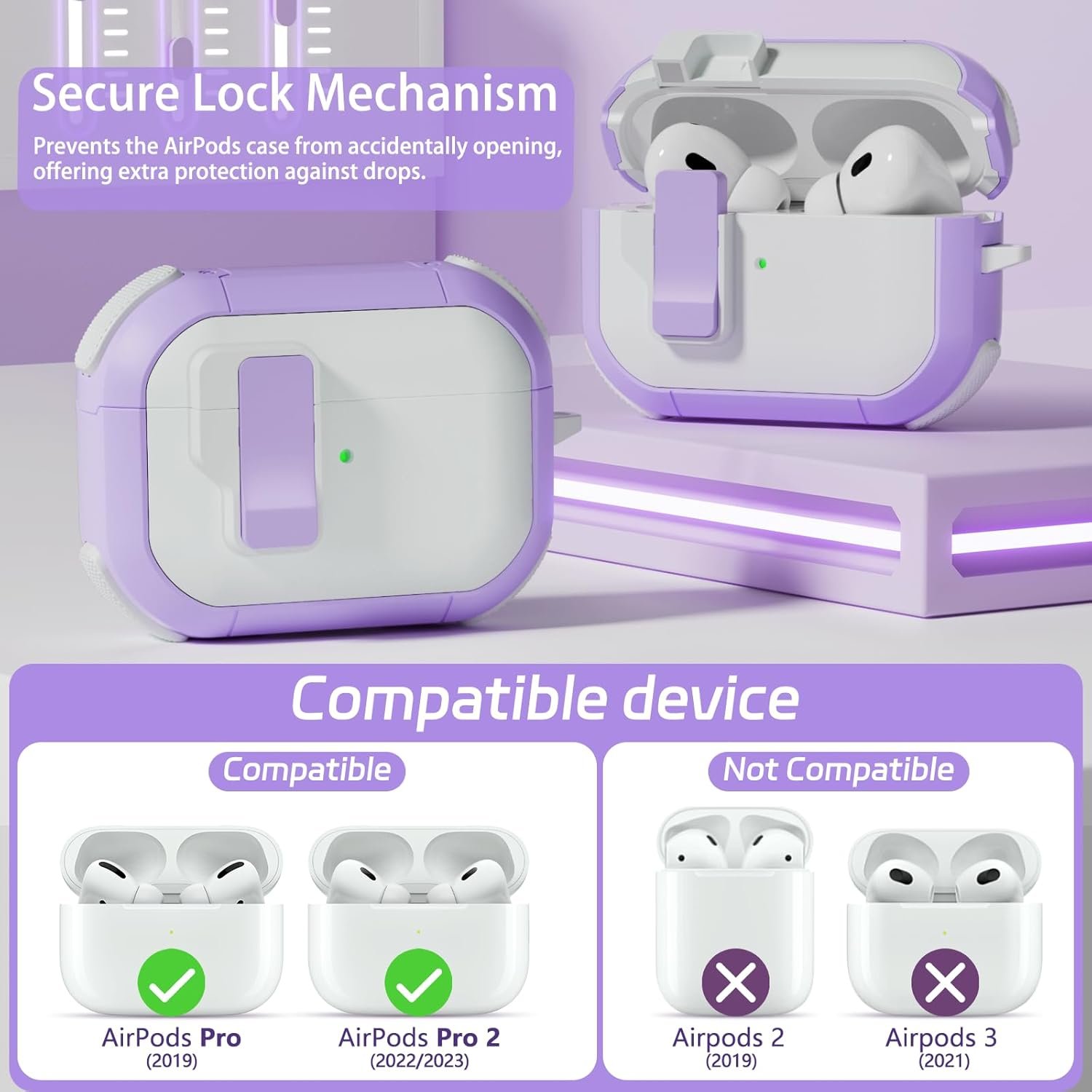 【Compatible Device】: Ekoonpft military graded hard shell protective clear case with secure lock designed available exclusively for Apple 1AirPods Pro 2 Generation USB-C(2023),1AirPods Pro 2 Generation (2022) ,1AirPods Pro 1st Generation (2019).
