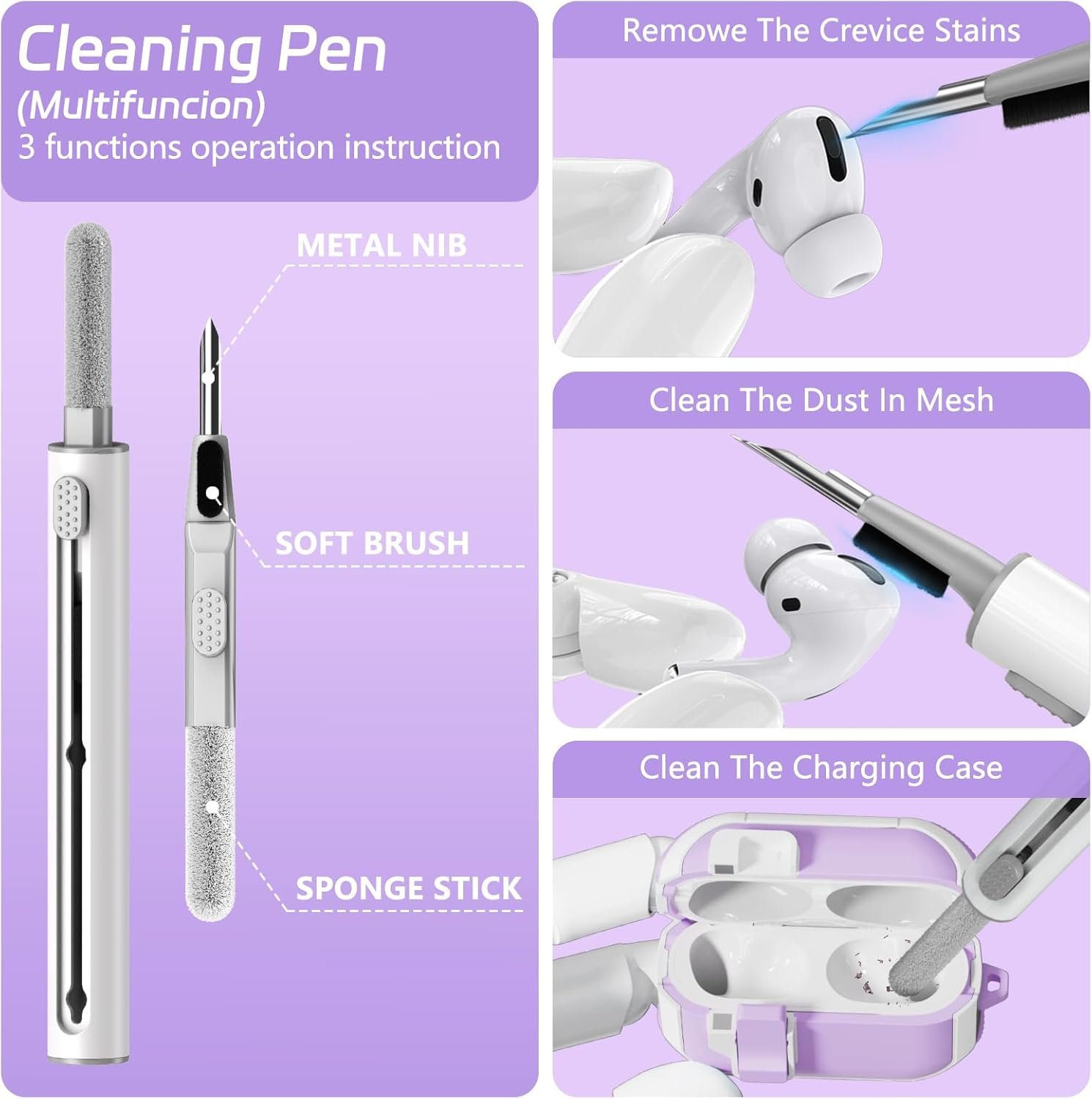 Case for AirPods Pro 2nd/1st Generation Case with Cleaner Kit, Ekoonpft Secure Lock Case for Apple Airpod Pro 2&1 Gen Case Cover with Silicone Wrist Strap Cute Candy Keychain for Women,Purple