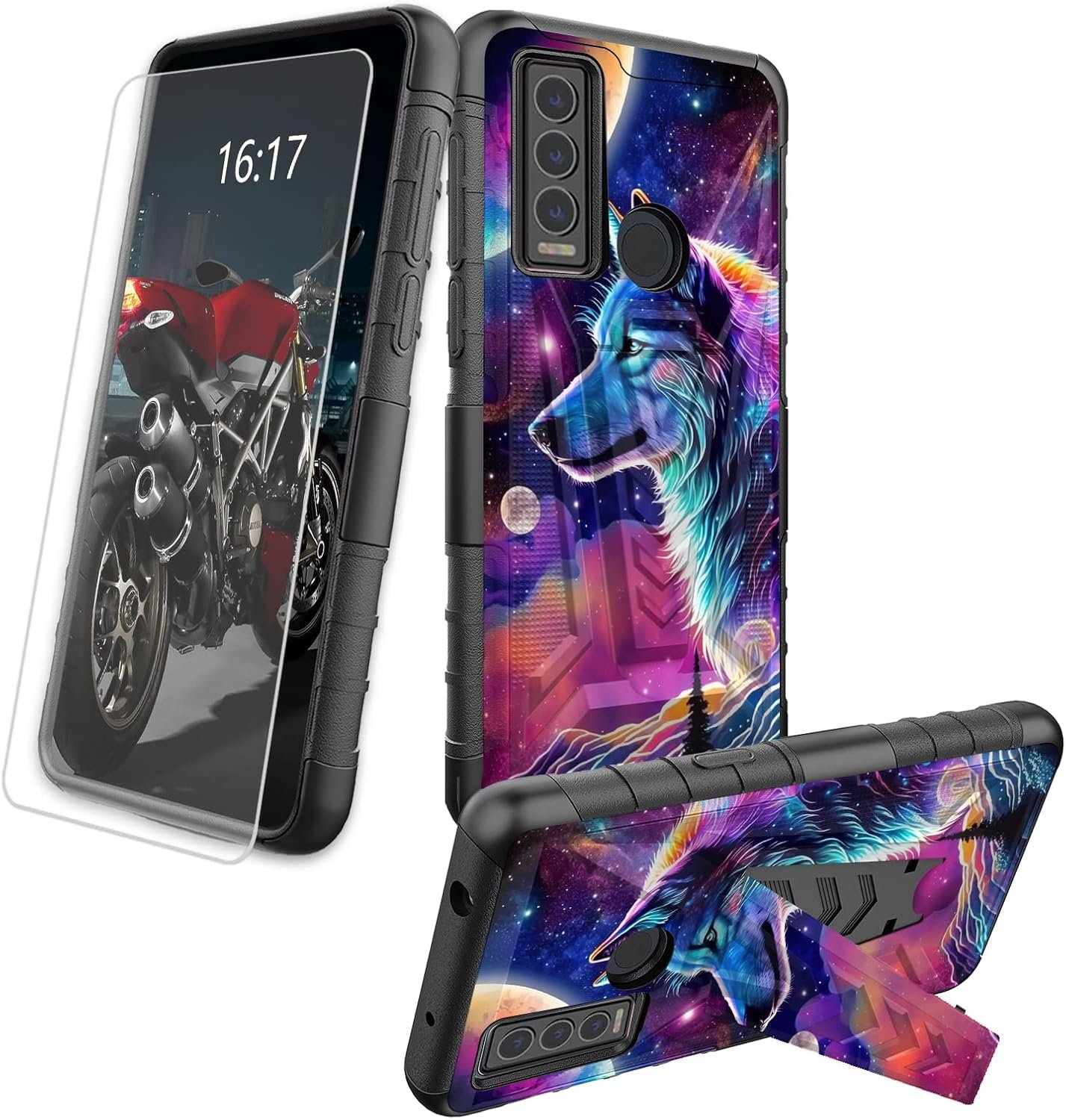 BREIDMKFM Shockproof Dual-Layer Case for AT&T Motivate Max (U668AA) / Cricket Ovation 3, for Cricket Ovation 3 Case with Kickstand(including 1 X Tempered Glass Screen Protector)