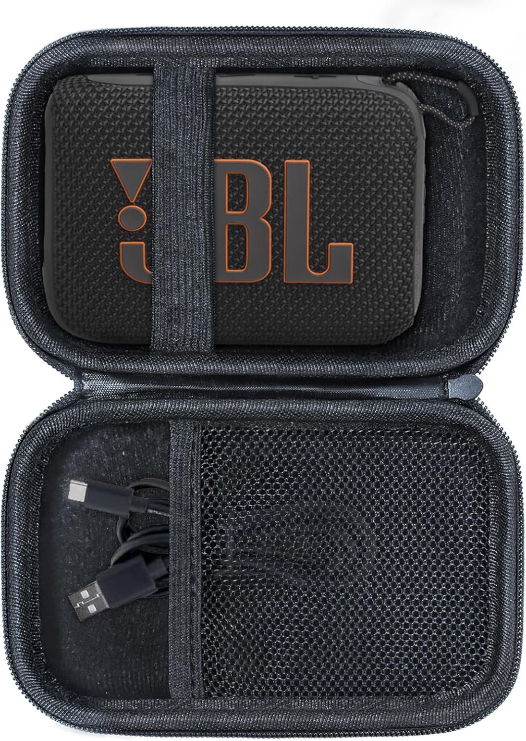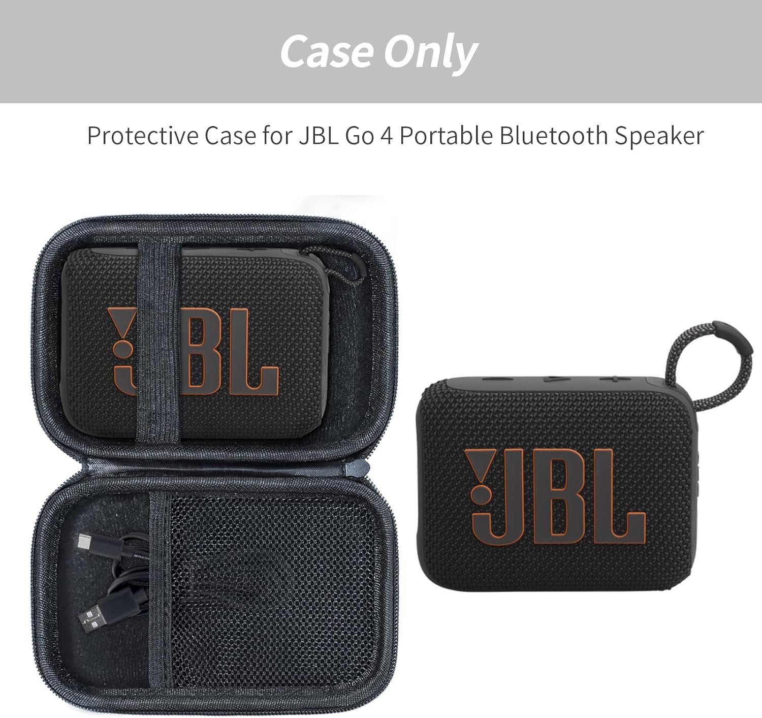 Tailored for Convenience: Securely store and protect your JBL GO 4 or JBL GO4 wireless speaker in this durable hard case. Featuring internal elastic bands, this case firmly holds your JBL Bluetooth speaker in place while providing separate compartments for necessary cables and adapters, ensuring everything remains organized and easily accessible.