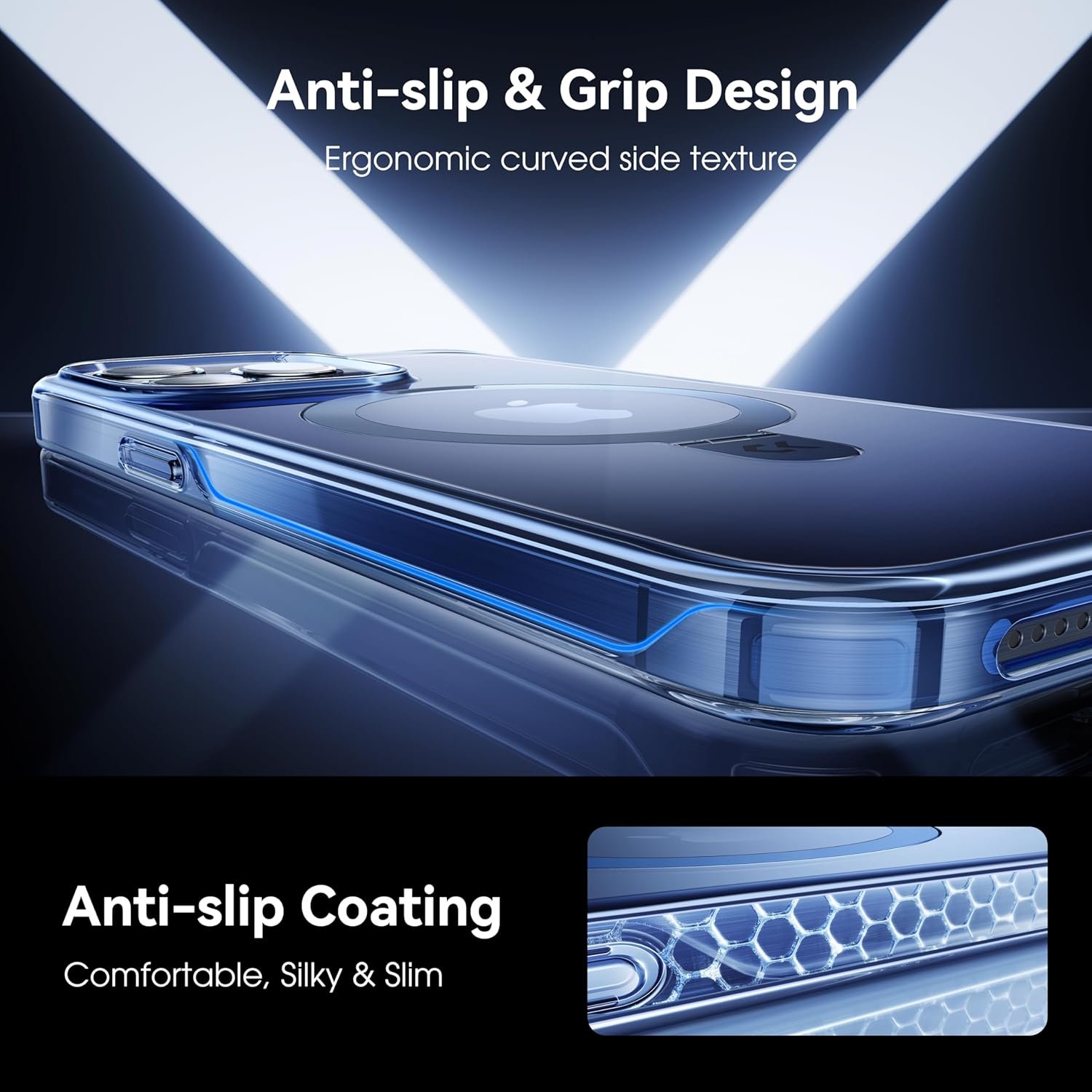 [Excellent Military-Grade Protection] As a protective case, it has excellent performance. The PC hard back panel and TPU bumper can effectively disperse the vibration caused by accidental impact. Built-in airbags at the 4 corners provide cushioning on impact. A 2.5mm offset bezel above the camera opening protects the lens from scratches. The 1.5 mm border above the screen and the built-in inverted triangle design can grip the phone more firmly and prevent the phone screen from being damaged.