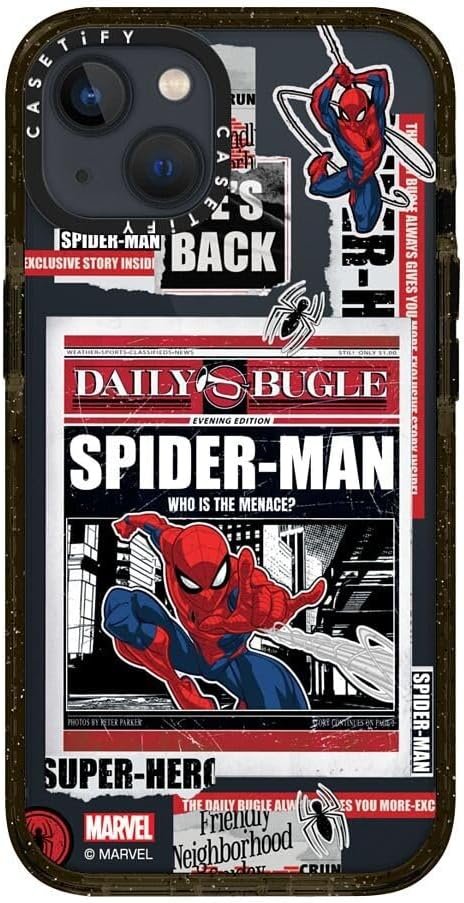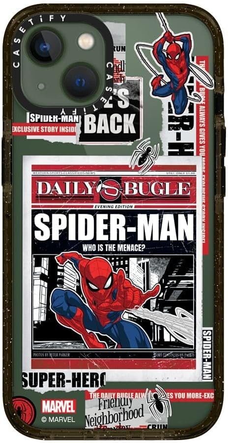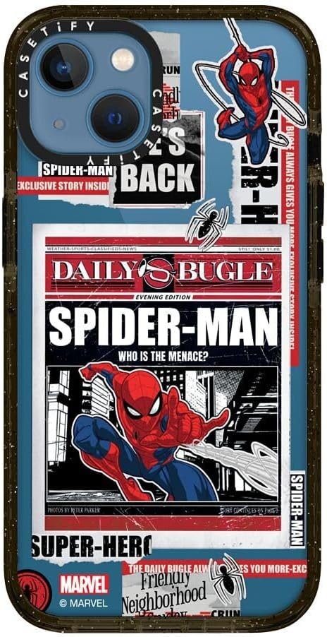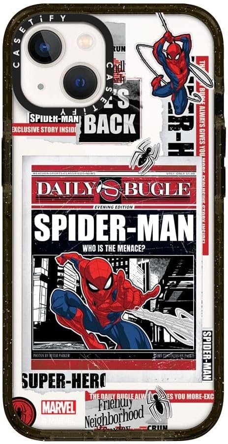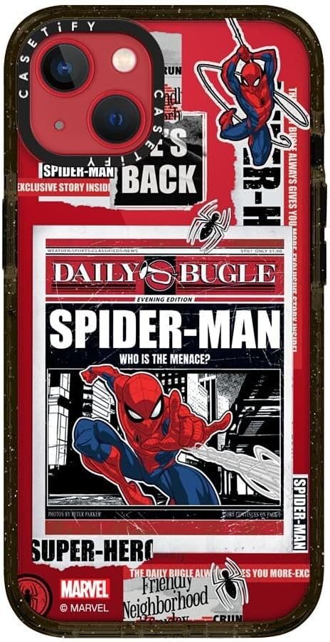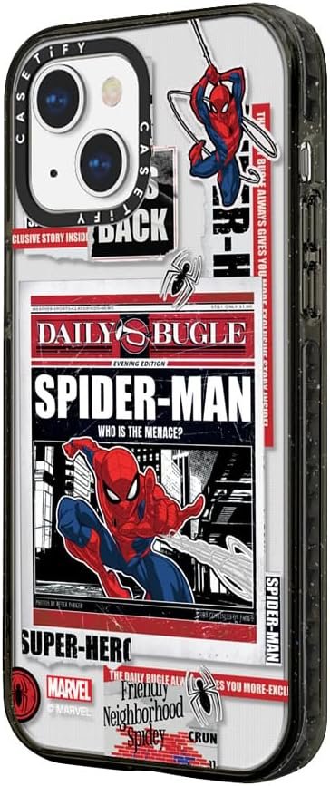 CASETiFY Impact iPhone 13 Case [Spider-Man Co-Lab / 6.6ft Drop Protection] – Spider-Man Newspaper Sticker – Clear Black