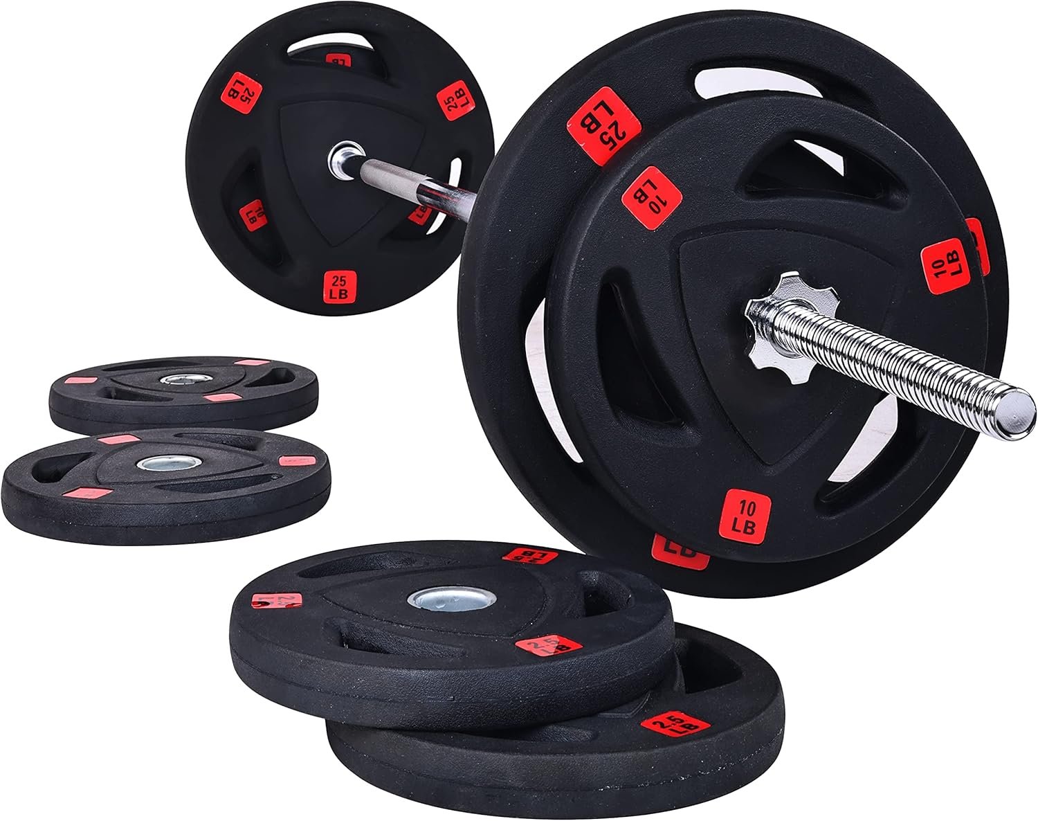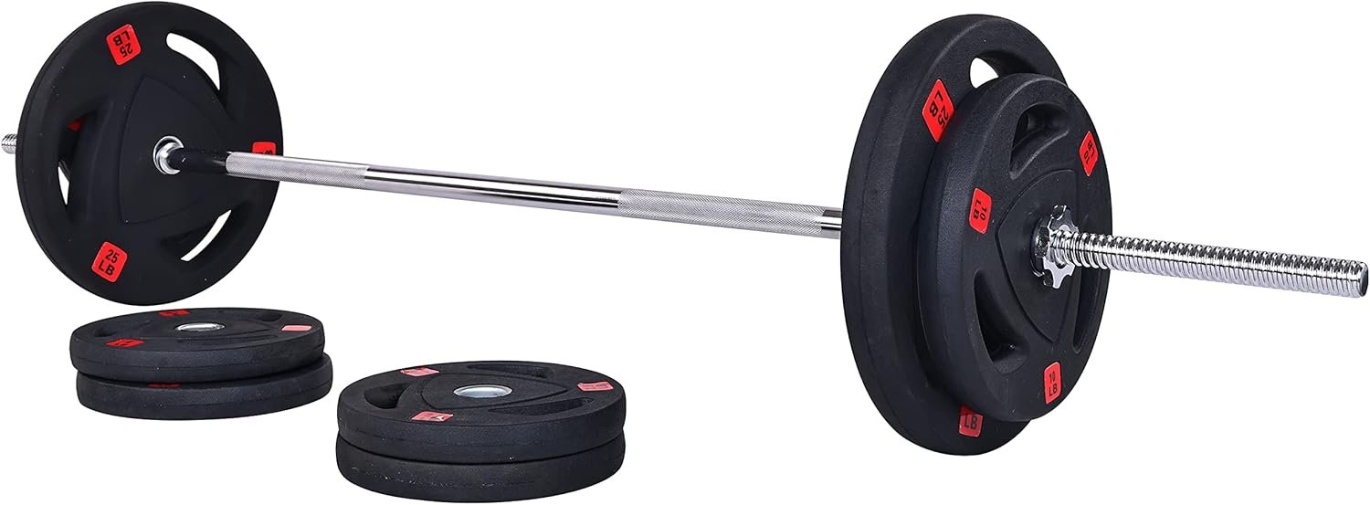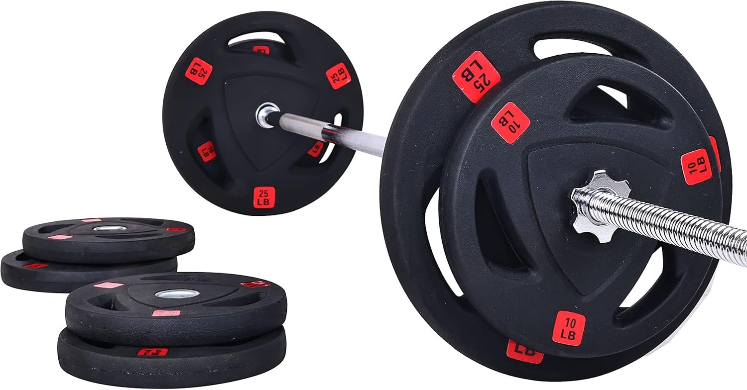 Cast Iron Standard Weight Plates Including 5FT Standard Barbell with Star Locks, 95-Pound Set (85 Pounds Plates + 10 Pounds Barbell), Multiple Packages