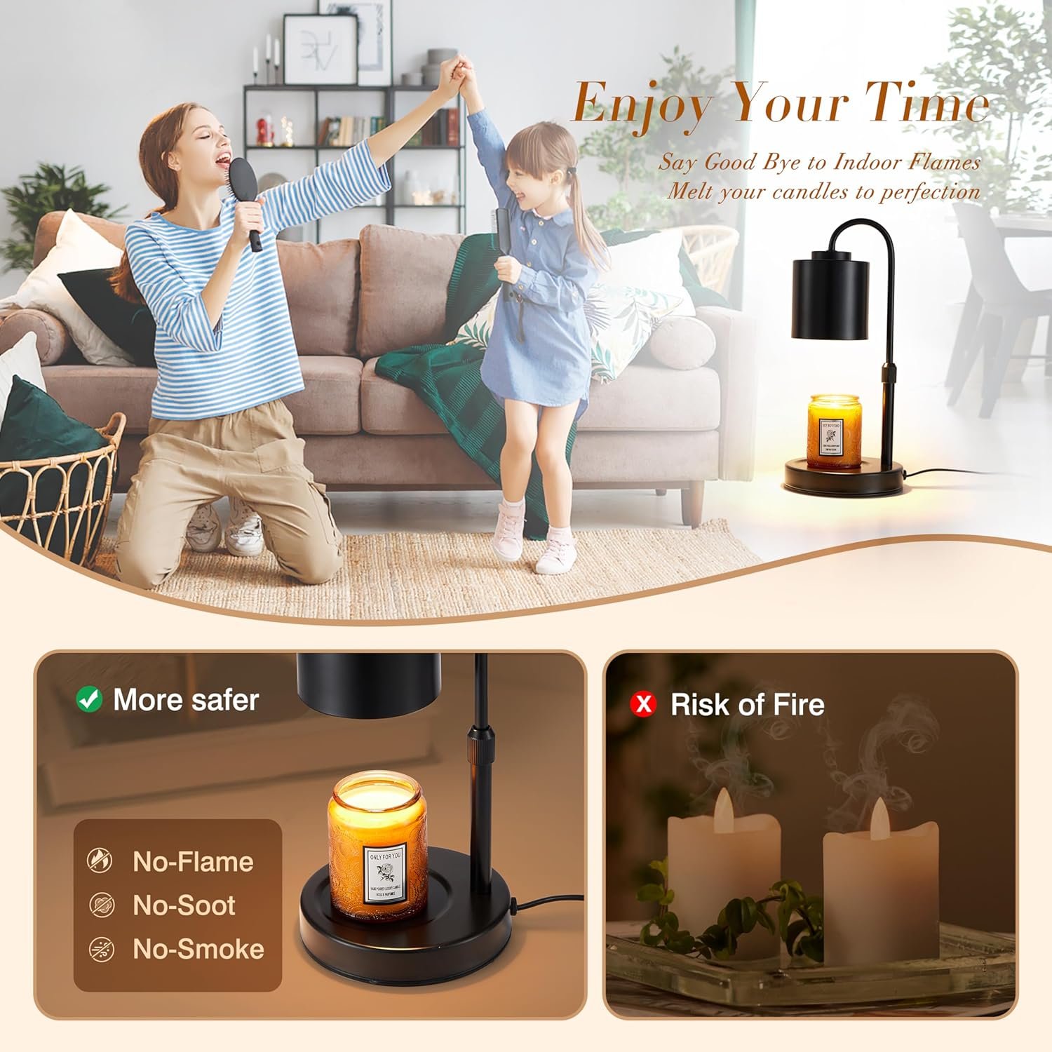 Safety : Compared with traditional burning candles, Wax Warmer Lamp(Candle not included) use of dissolved wax lamps eliminates the need to light your candle. Not only can make the candle fragrance more attractive, but also can achieve no flame & smoke and reduce fire risk. You can enjoy the continuous aromatic fragrance of candle safely at home
