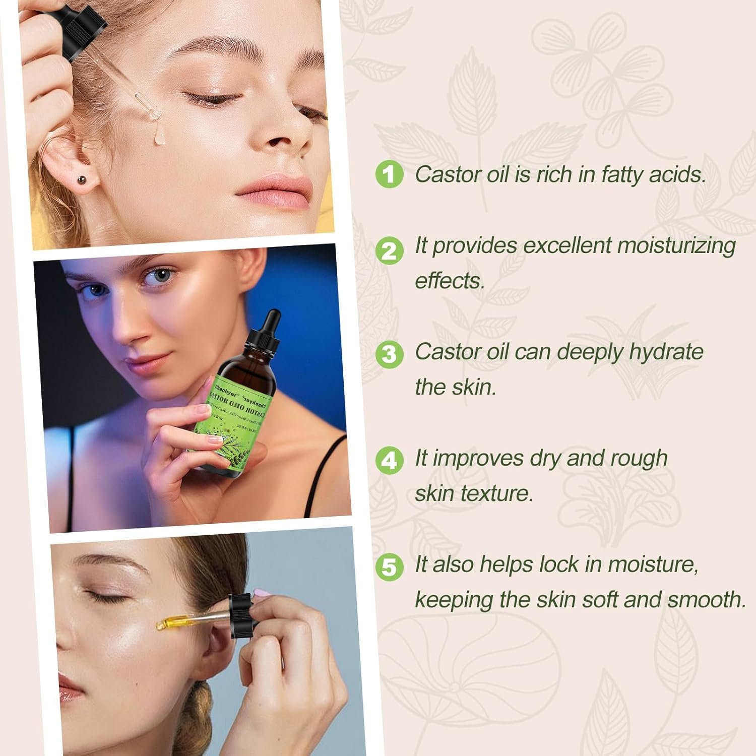 Multi-Functional Moisturizing Care: Rich in essential fatty acids and vitamin E, castor oil deeply moisturizes and hydrates the skin, improving dryness and rough texture. It’s suitable for use on the face, body, hair, and even dry elbows and knees, keeping your skin and hair soft and smooth all day long.