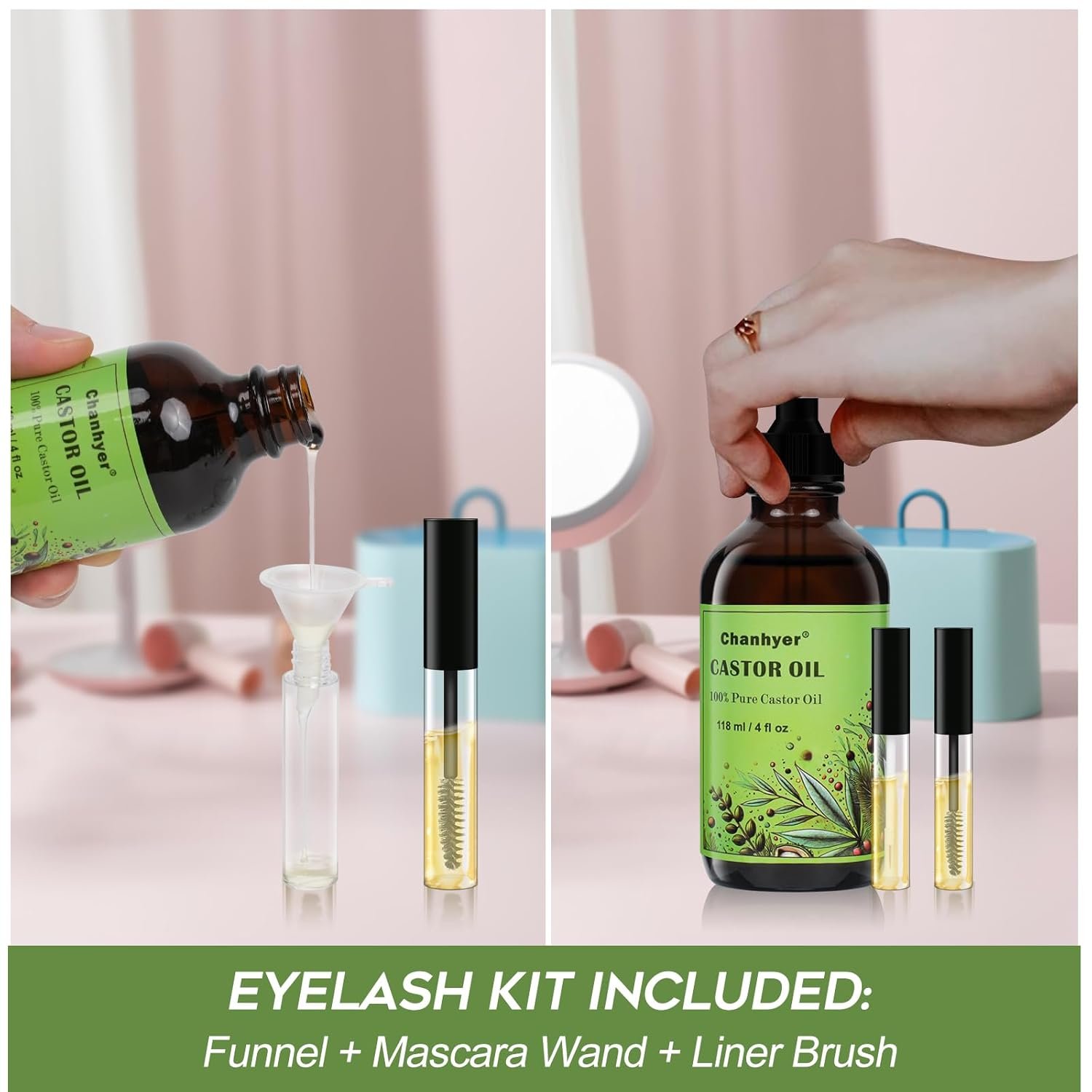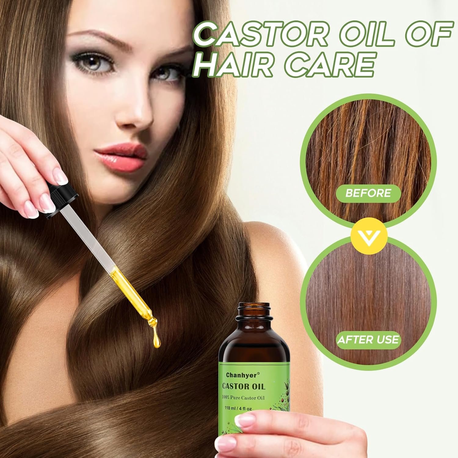 Natural Hair and Eyelash Growth Booster: Castor oil is renowned for promoting hair and eyelash growth. Regular use strengthens hair roots, reduces breakage, and helps hair become thicker and more resilient. It also naturally enhances the growth of eyelashes and eyebrows, making them fuller and healthier.
