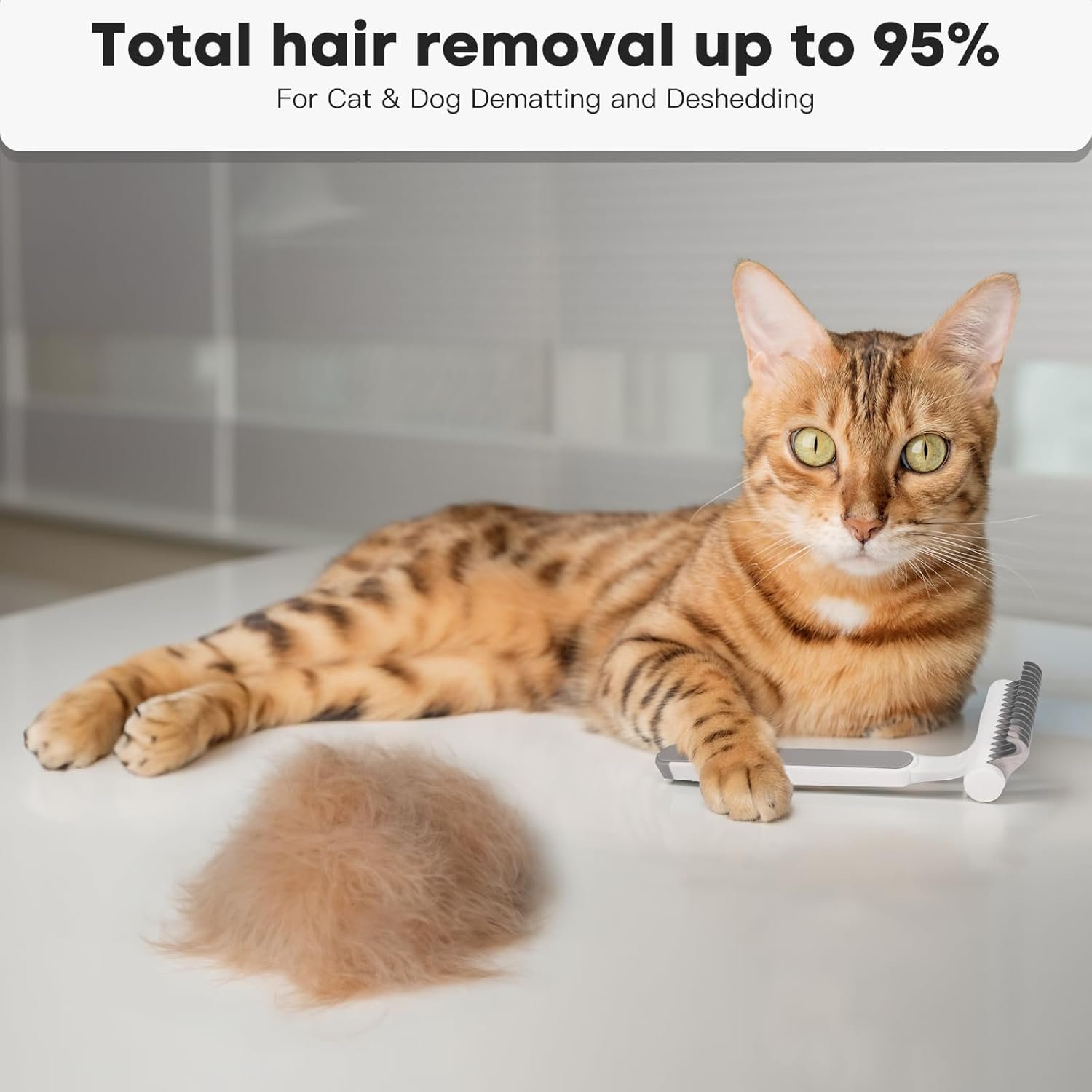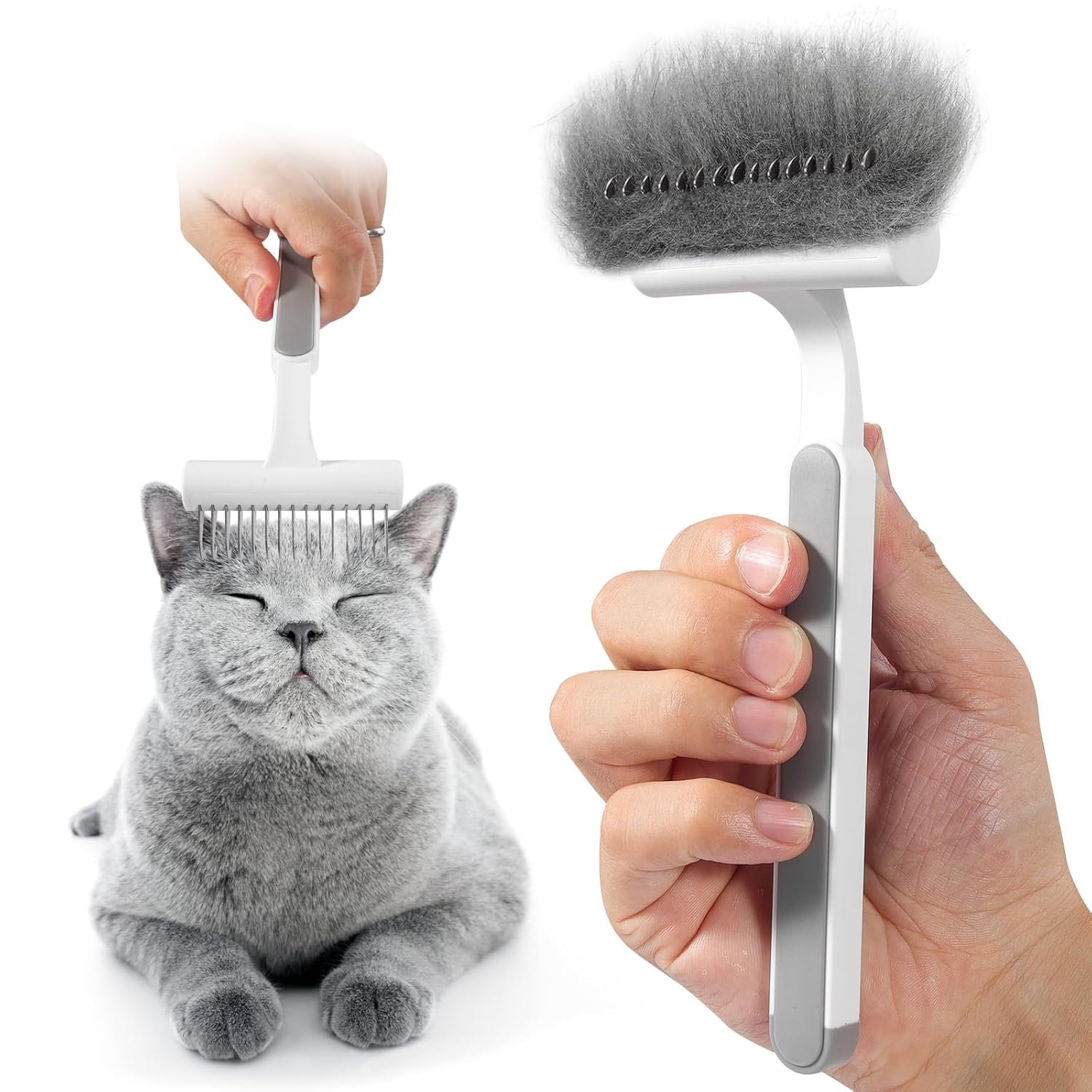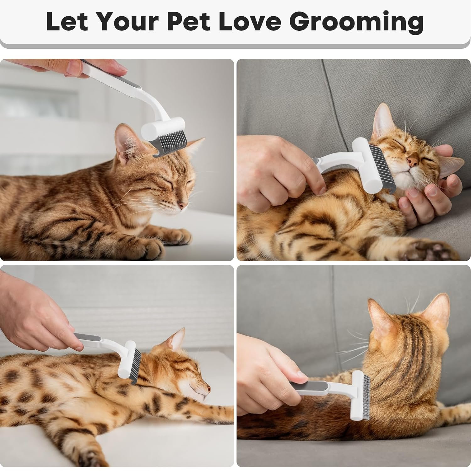 Brushing the whole body towards the direction of hair growth with this deshedder brush for cats to remove loose hair up to 95%.