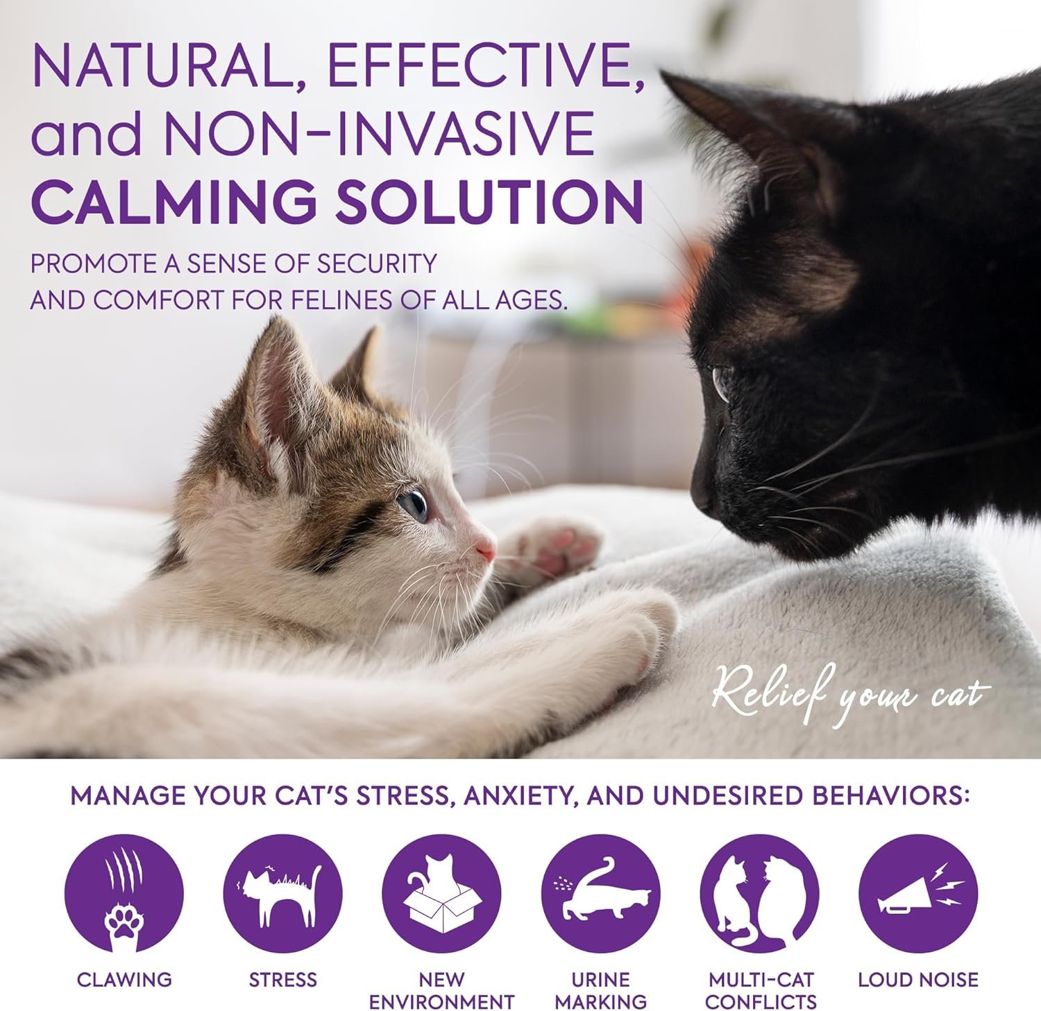 [4 Pack Convenience] Cat pheromone calming diffuser refills comes as a 4-pack for added value and convenience. Cat diffuser allows you to cover multiple areas in your home or address the needs of multiple cats.Can be used in conjunction with other cat calming products.