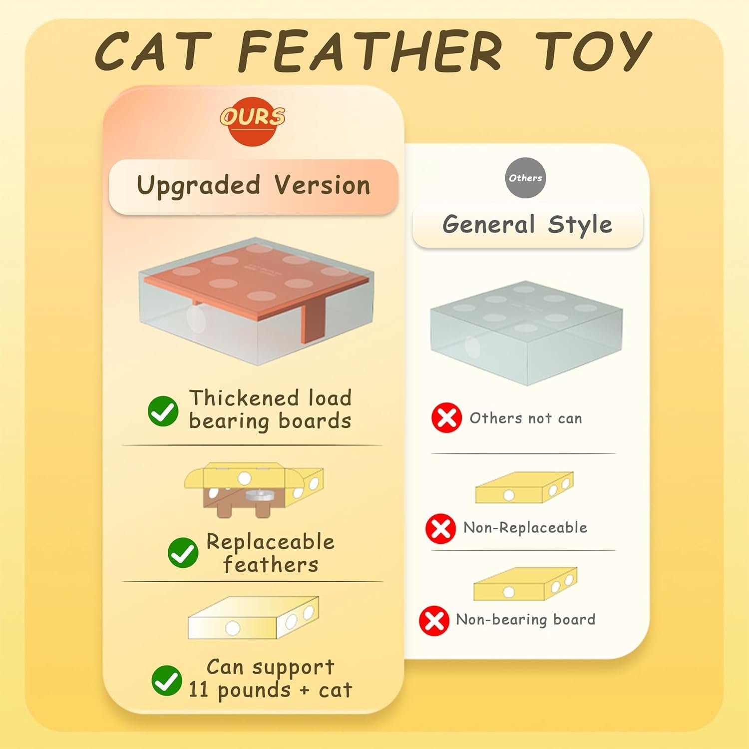 【Upgraded Cat Feather Toy】: The upgraded cat toy board is stronger, the feathers can be replaced, the double thick film, the quality is upgraded, more suitable for cats to play(2 AA batteries are not included)