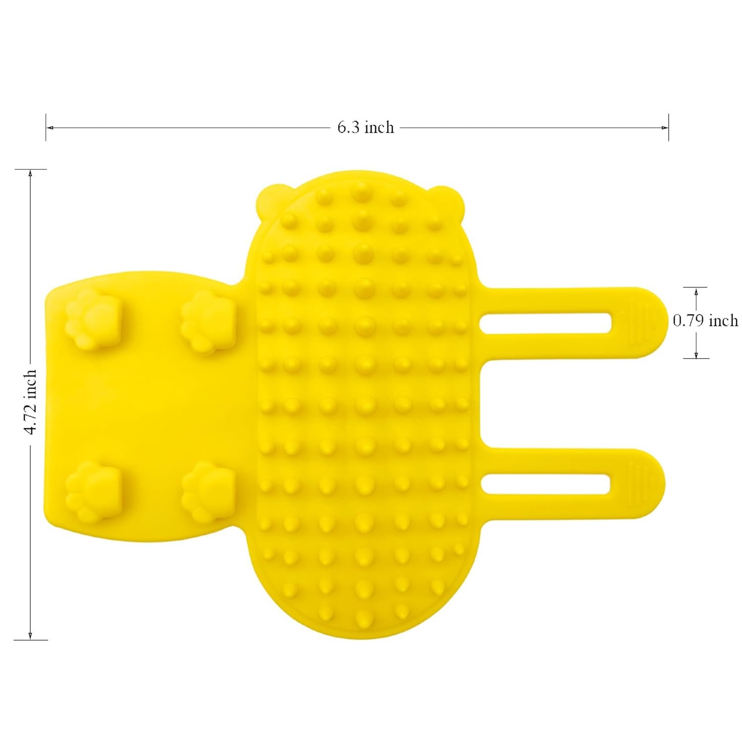 Adjustable elasticity: Pet massaging brush with 79 round comb teeth is made of silicone and features adjustable straps. The maximum circumference of the leg tie is 6.9 inch, suitable for cats and dogs