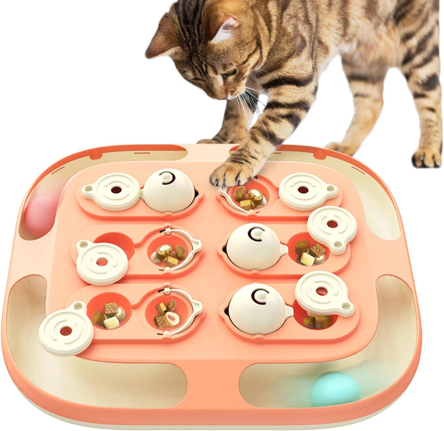 [Puzzle Toy] Featuring two levels of play difficulty, this toy allows cats to earn food rewards while playing. The game encourages cats to think, engaging both their mind and body, and promoting brain development. The process of obtaining food can also help alleviate anxiety, allowing cats to better integrate into family life.