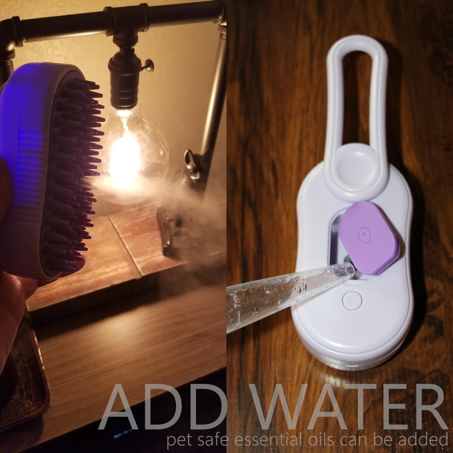 Silicone bristles massage your pet while removing the excess fluff. This soft approach is much better than hard wire brushes that can scratch or feel uncomfortable after a few strokes.The cold steaming spray helps mat down the hair that, in other cases, might go flying. Add a drop or two of pet-safe essential oil to the water reservoir to improve pet odor. Remove the silicone bristle pad for soap and water cleaning after a few uses.The brush charges to optimal power in less than 30 minutes of charging.