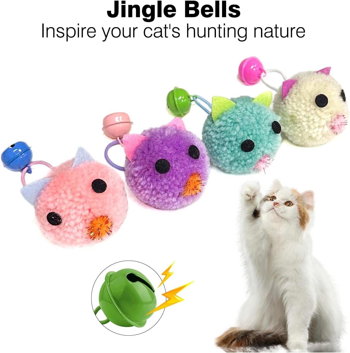 Value Pack of Cat Toys: This set includes 4 color woolen yarn cat balls with bells. The size and design are suitable for cats at any stage of play, ensuring endless entertainment and fun.