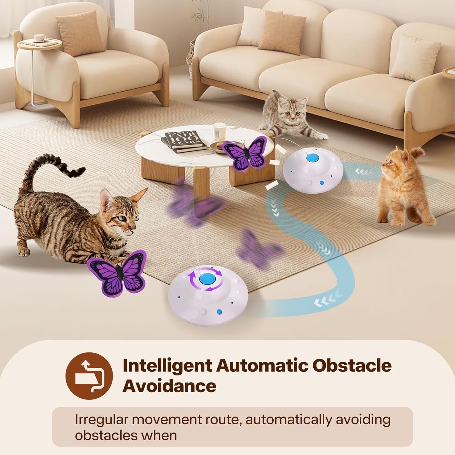 Mental Stimulation For Cats: This cat enrichment toys for indoor cats also has an auto avoid obstacles function, fluttering butterfly stimulate your cat’s hunting instincts,it’s a great companion for cats to release their energy