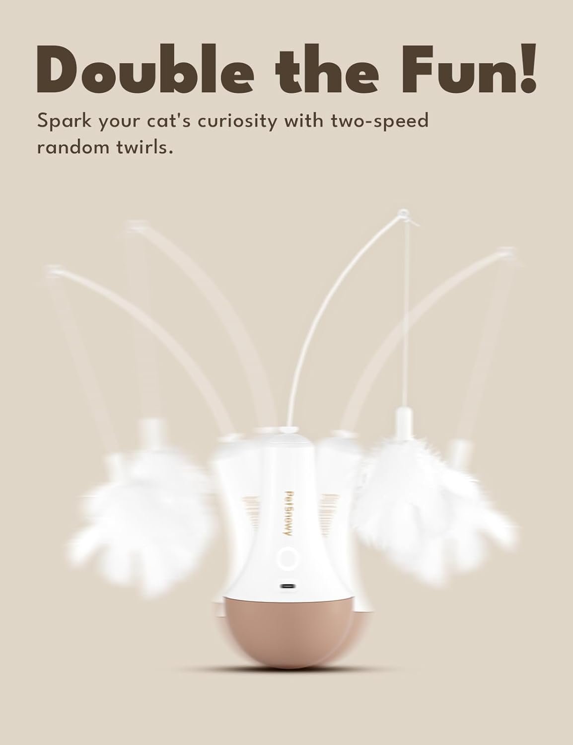 【Step Up the Fun】Perfect for active cats. This interactive cat toy rotates its feather for 360° randomized play with two adjustable speeds. The feathers atop the wand are easily replaceable for long-lasting use. With our innovative and interactive cat toys for indoor cats, your fur baby will never have a dull moment.