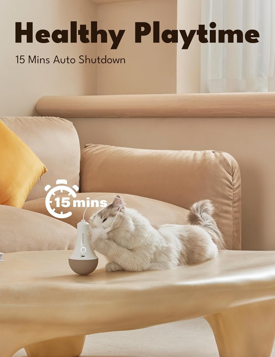【15-Minute Auto Shutdown】Overplaying may damage kitty’s heart. Our smart cat toy has a 15-minute auto shutdown trait to promote cat wellness. Moderate playing keeps your kitty pal from overworking and provides you peace of mind.