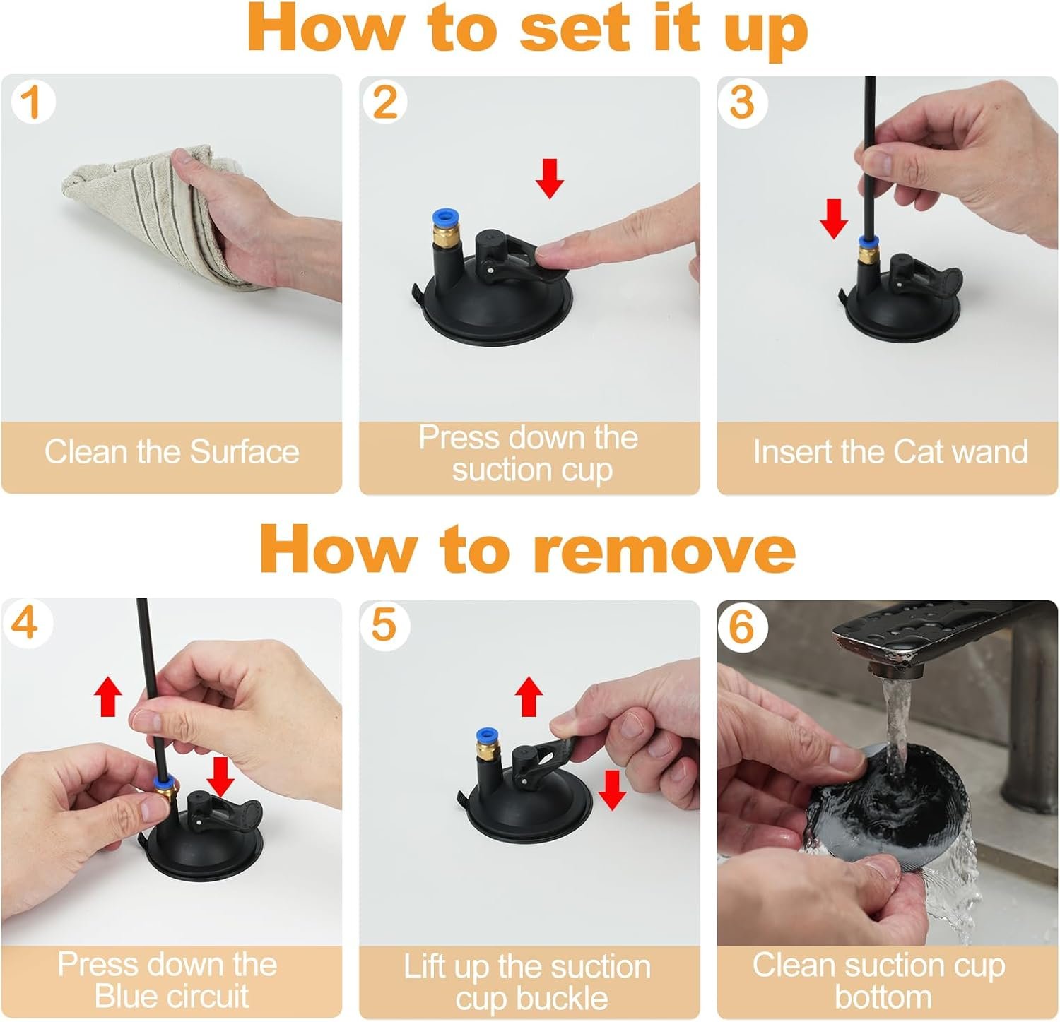 Cat suction Cup Toys: 2 pieces suction cup with cat wand allow you to cay play by them or you can use the cat wand toys to interact with kitten. 4 pcs feather and worm replacement are ready. Cat self-play toys can be suctioned on the clean floor, table, or glass doors.