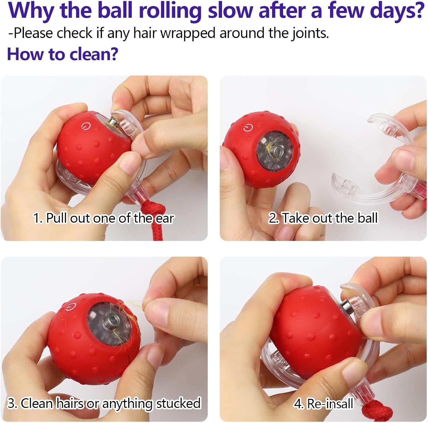 Please kindly clean the ball (like hairs, or anything stucked) after a period times use.The rolling speed was difference when balls rolling on difference ground, high rug pile will make ball slower.
