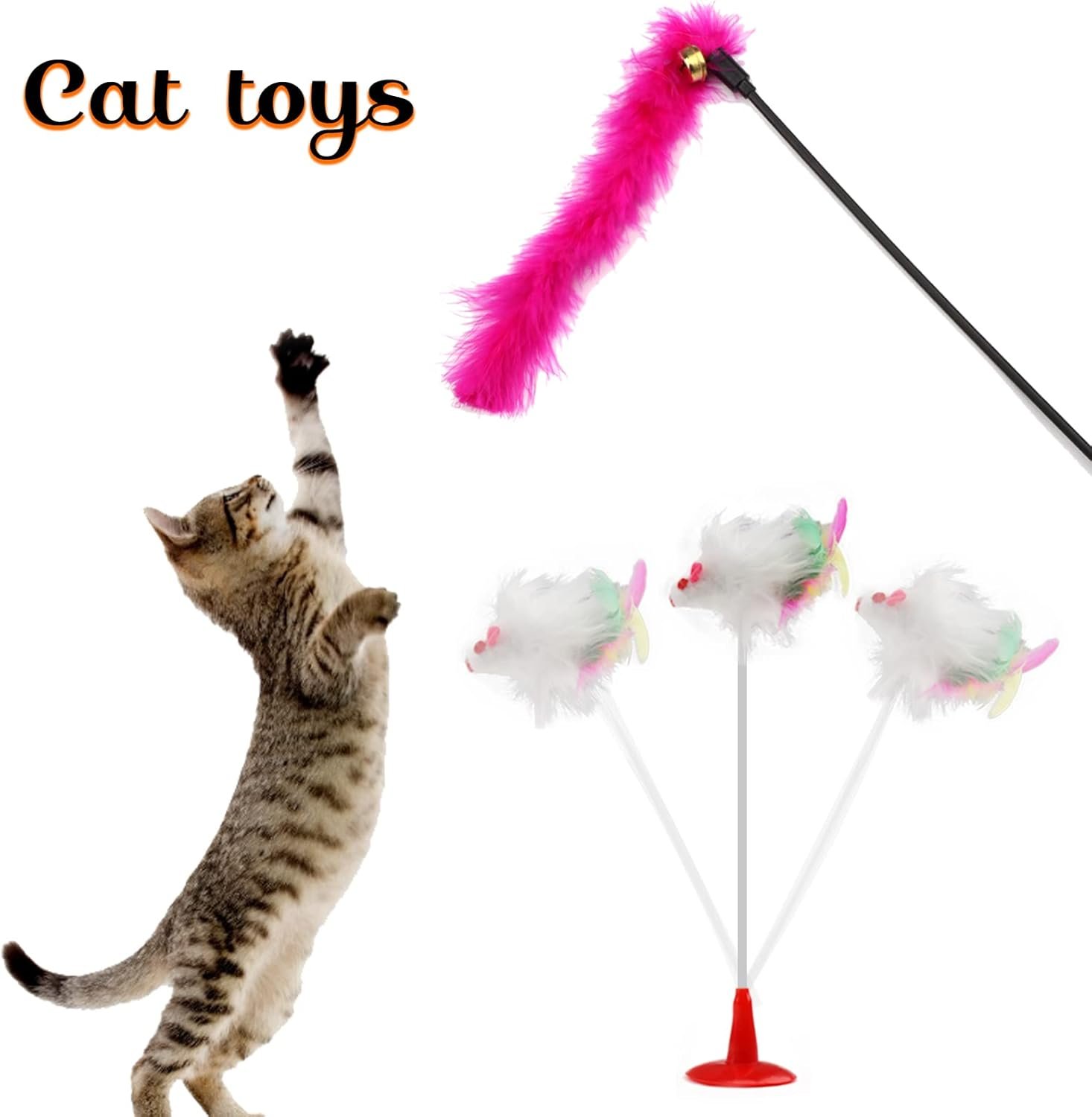 Customers appreciate the variety and value of the pet toy set. They find it a good starter pack for kittens, with a nice assortment of toys that keep pets entertained. However, some customers have reported issues with the suction cups not sticking properly or falling over. There are mixed opinions on the overall quality.