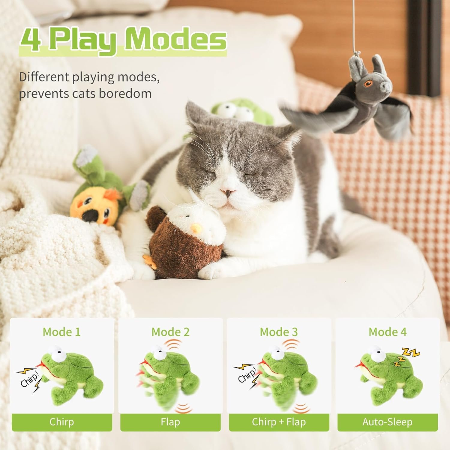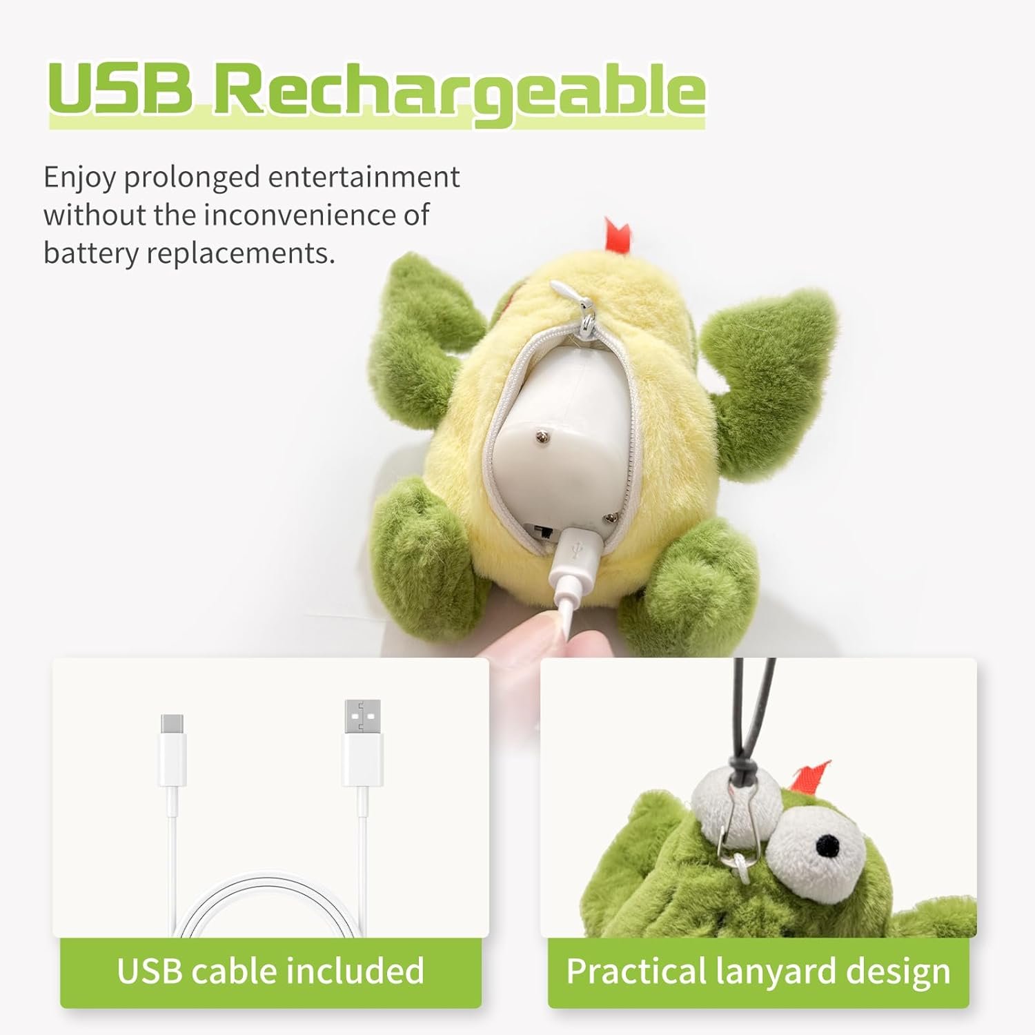 【USB Charging Kitten Toys】 Our cat toys self play is equipped with a USB rechargeable feature, eliminating the need for battery replacements (USB cable included) .The frog cat toy for cat birthday conserves battery power by remaining in a dormant when not playing,and quiet state, ensuring long-lasting usage.
