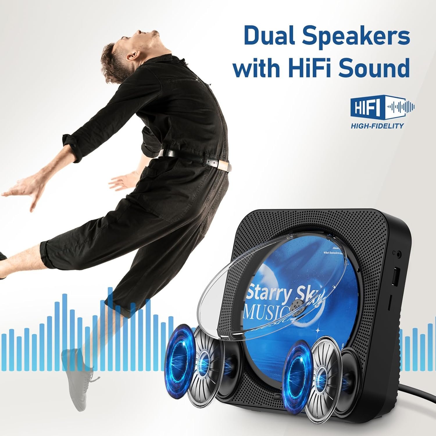 【HIFI Dual Speaker】Equipped with Bluetooth 5.1, stable connection, long transmission distance and lower power consumption. This portable CD player can not only listen to music with CD / USB / TF card, but also connect to Bluetooth signals from mobile phones and tablets to play wireless music as a speaker. Note: There is Bluetooth transmit function, no Bluetooth receive function.