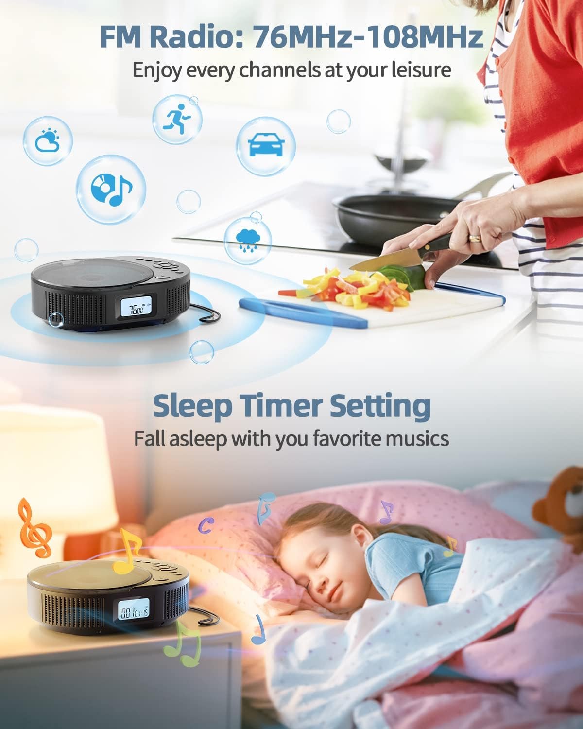 【FM Radio & Sleep Timer】The Kpop CD player has built-in FM radio, supports 76MHz-108MHz. Comes with front LED display, you can see the mode and playing time on the screen easily and clearly. A sleep timer function is convenient for you fall asleep with music, just set the shutdown time between 30-120 minutes, no need to wake up to turn it off. Enjoy the cd player wherever in bedroom, living room, kitchen or office.