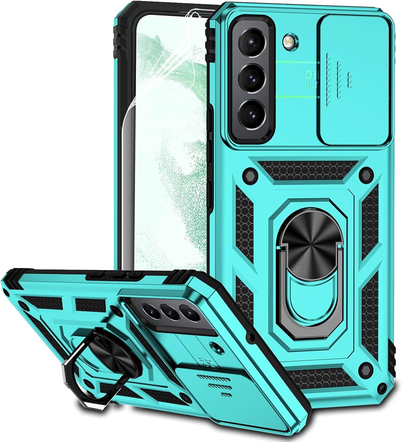 for Samsung Galaxy S22 Plus 5G Military-Grade 2nd gen with Slide Camera Lens Cover Magnetic Ring Holder Kickstand Protective Phone Case