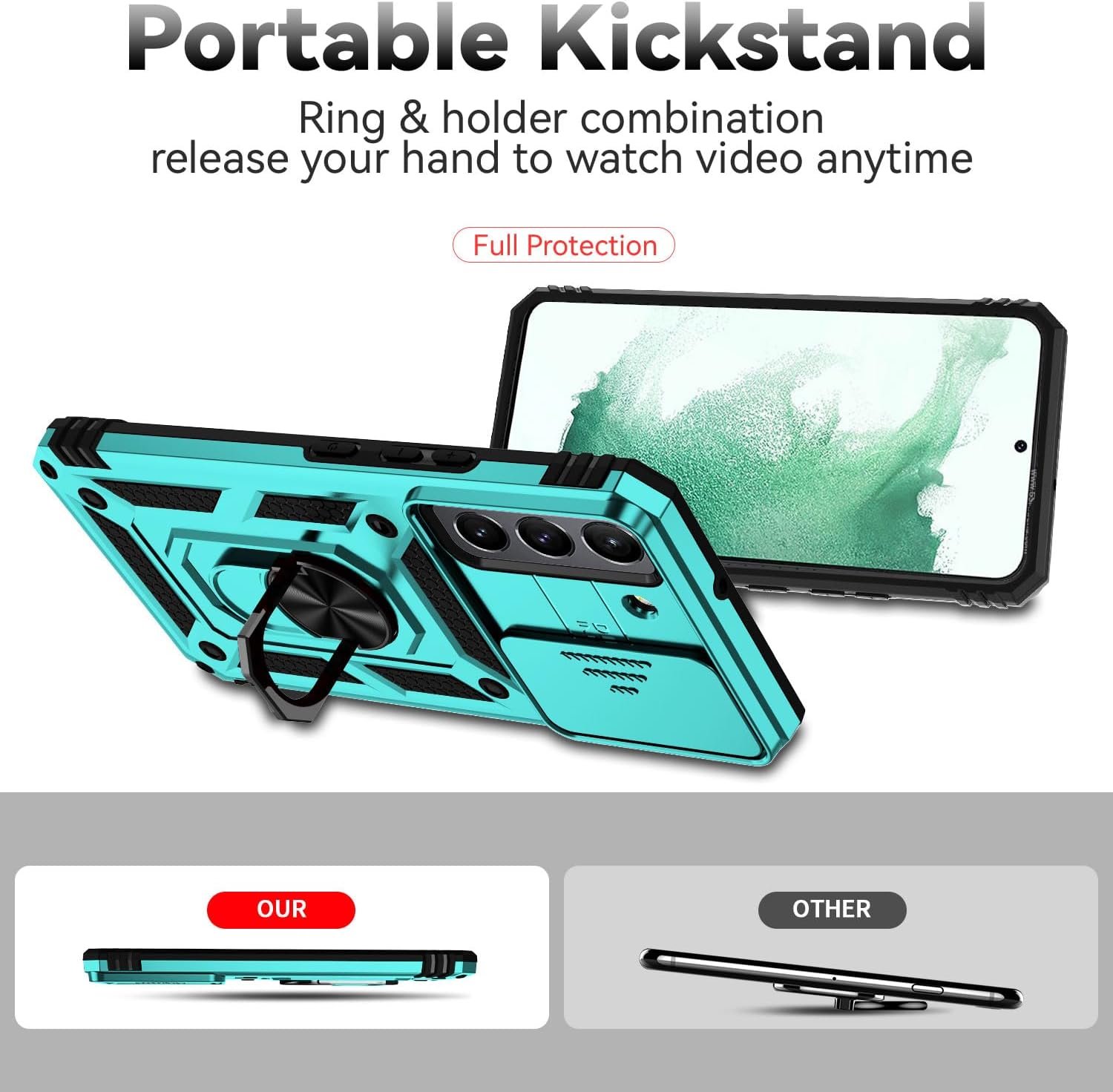 đ± ăDurable and Delicate Phone CaseăArmor Case with sliding camera cover specially designed for Samsung Galaxy S22 Plus 5G 6.6 inch (2022 released). The precise cut out fits each button,camera,speakers and ports precisely, easy to press and access. â ïž Notice: Due to the metal ring on the back,the case will NOT work with wireless Charging function.