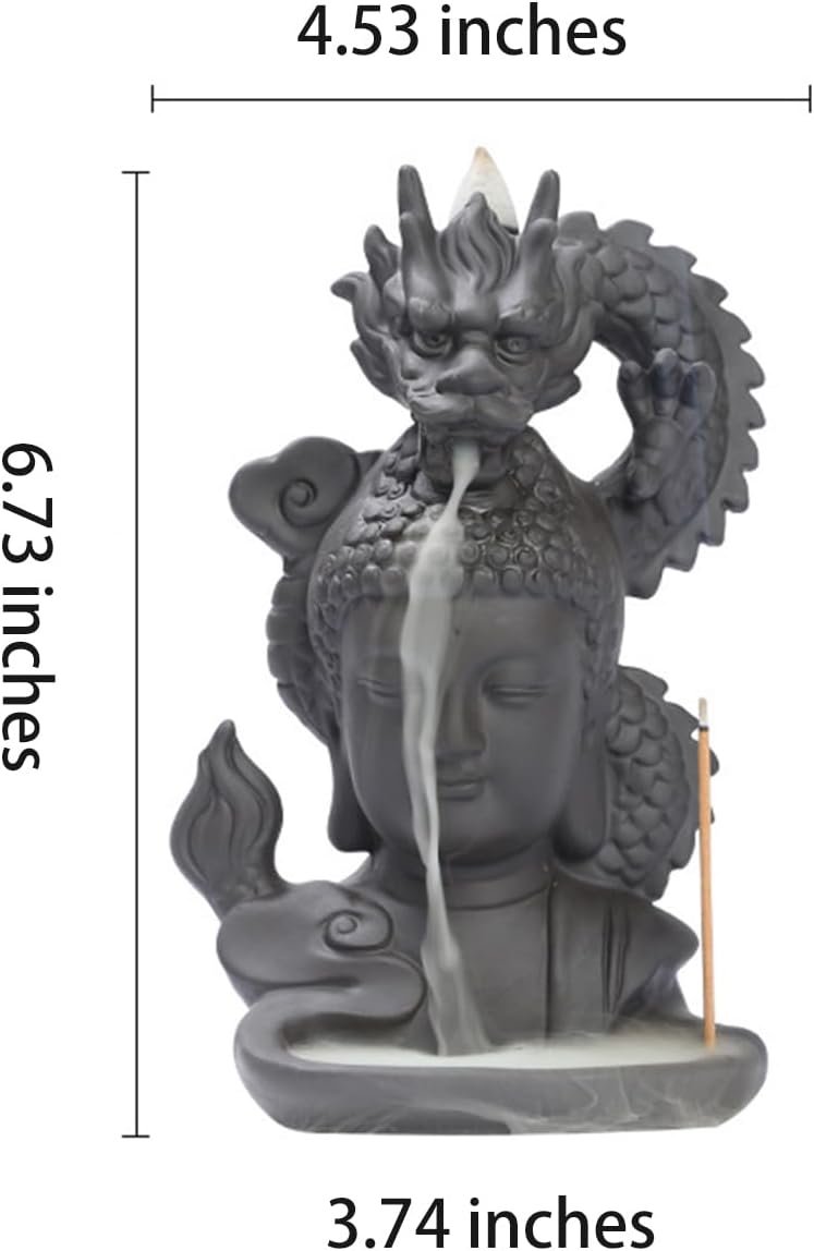 Ceramic Backflow Incense Burner Set,Waterfall Backflow Incense Holder with 45 Cones & 30 Sticks, Aromatcherapy Ornamen,Dragon & Buddha Statue for Spa Office Bedroom Yoga (Buddha Statue Dragon)