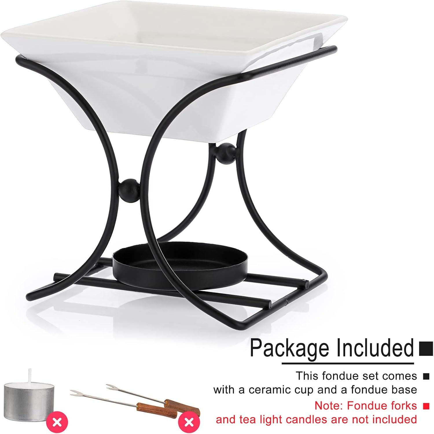 🍲PACKAGE INCLUDED – This chocolate fondue pot butter warmer bowl set comes with a ceramic cup and a fondue base only. Note: Fondue forks and tea light candles are not included.