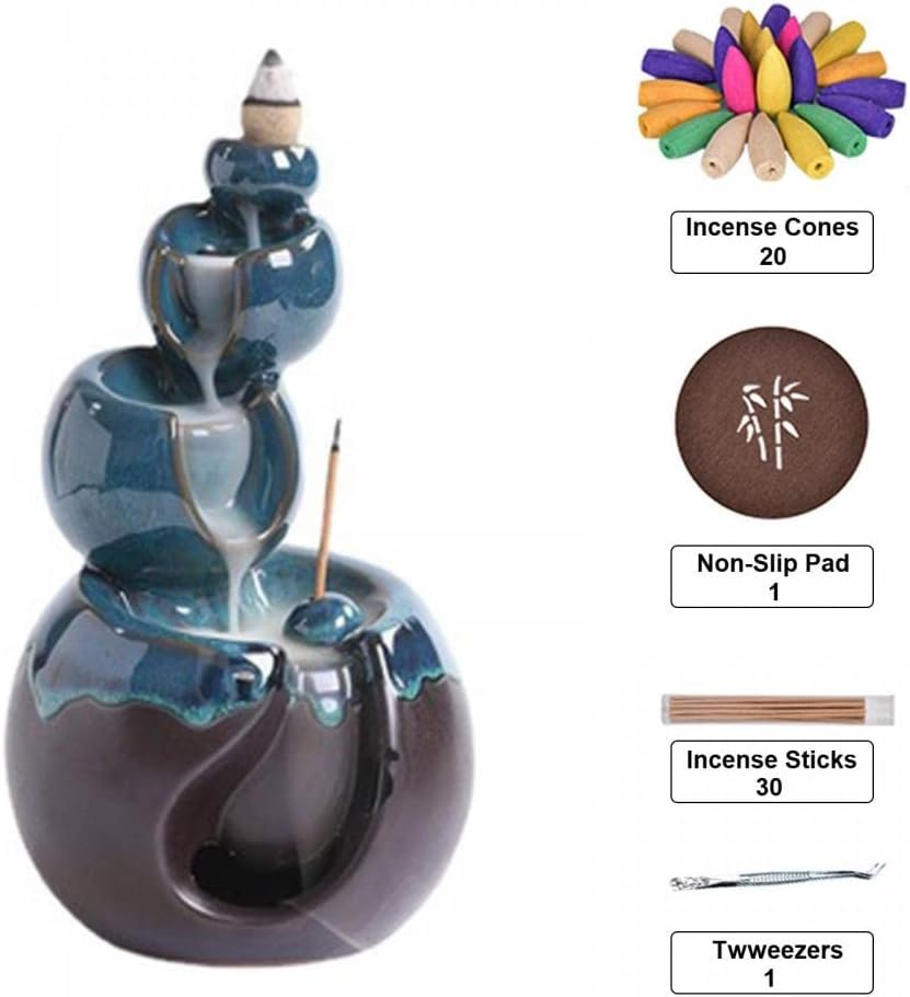 【Stress Relief】- Using the waterfall incense holder with the incense cone helps to relax at work, purify the air and improve the quality of sleep. The incense cone holder can be widely used in living room, bedroom, study, office, meditation room, yoga room, hotel and other places.