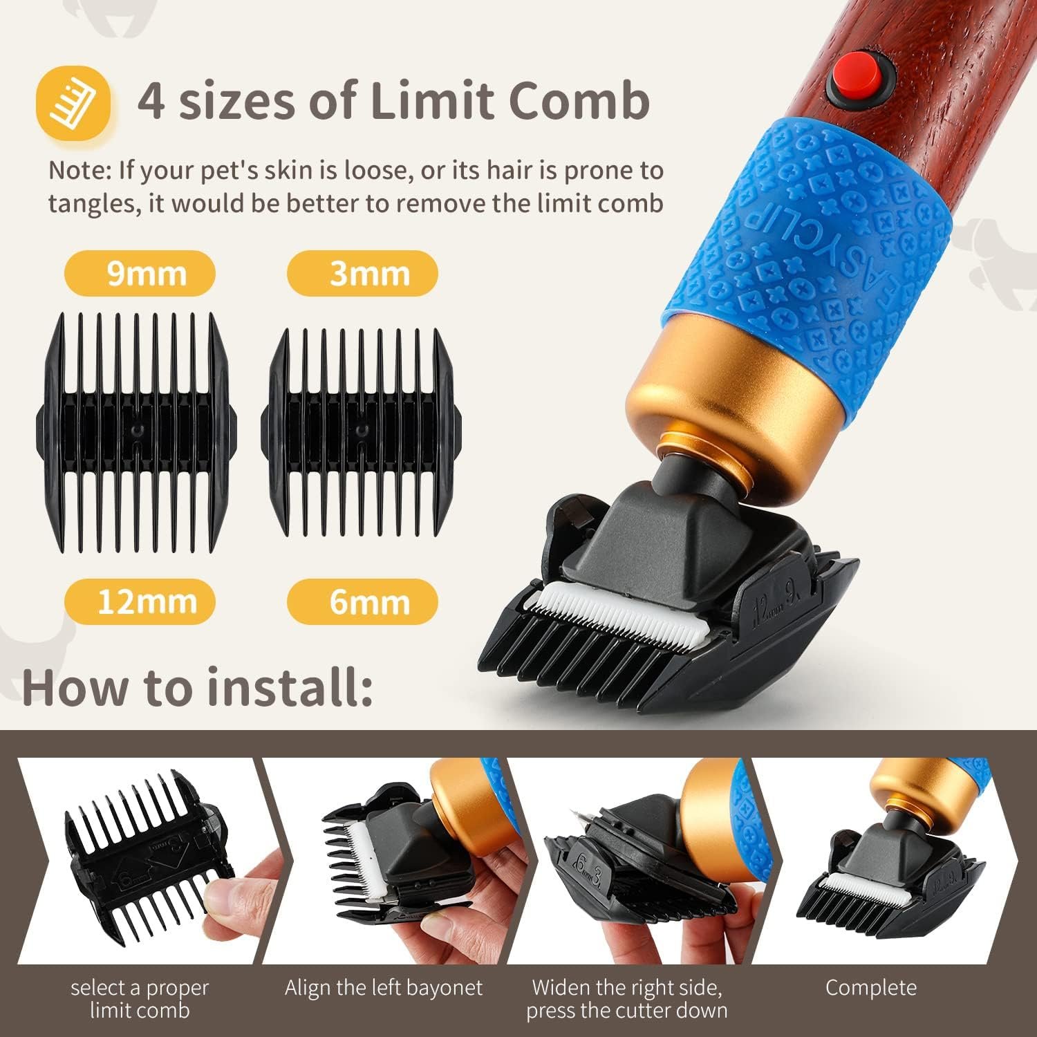 Remove the Limit Comb: if you find the clipper doesn’t work well when trim the pet’s hair with the the limit comb, please remove the comb first and try to clip the pet’s hair with the clipper directly. The clipper equipped with the limit comb is only suitable for sparse pet’s hair.