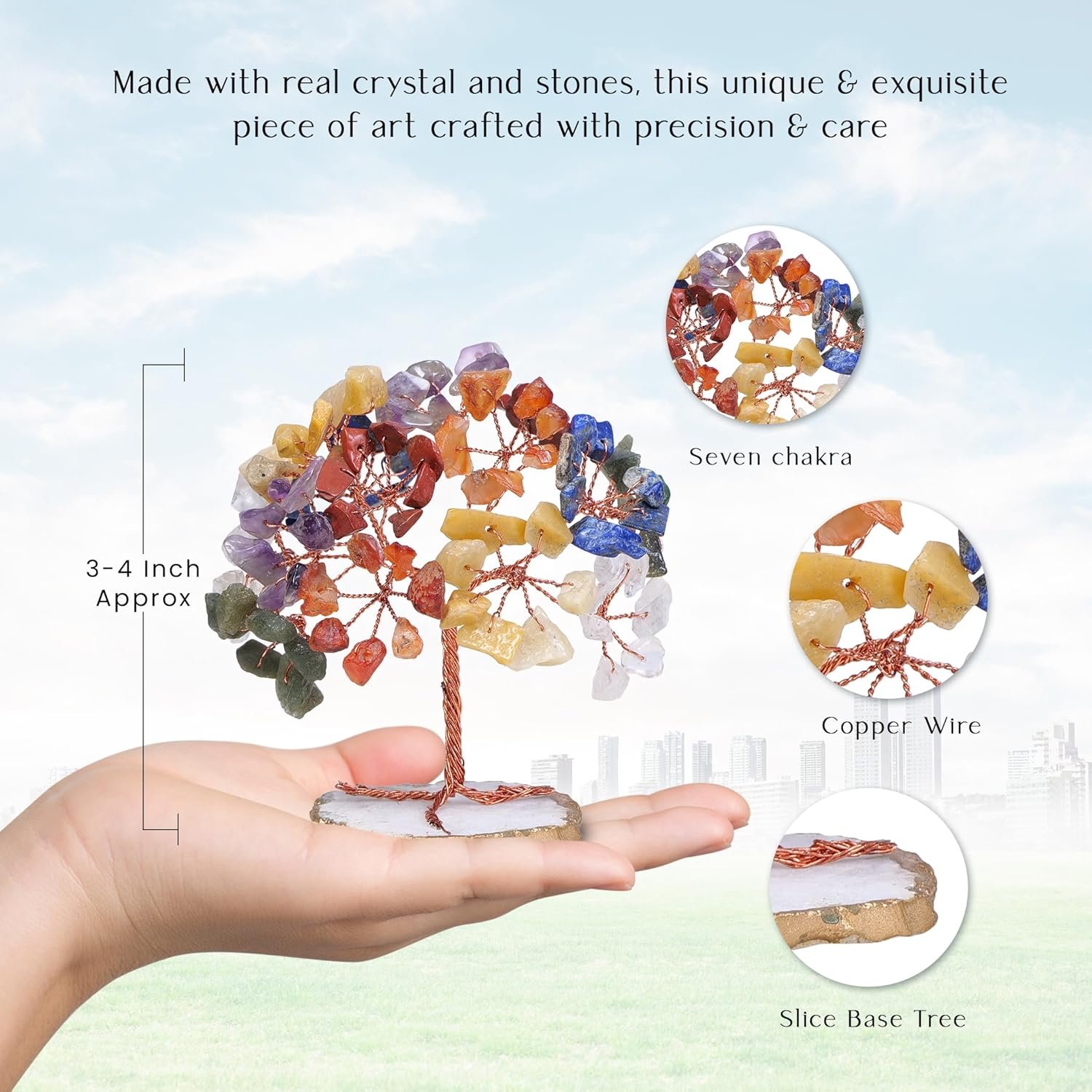 Precious Stones And Crystals – Gemstones and crystals bring balance to your space. Tree of life chakra stones, perfect for feng shui and holistic practices. The chakra tree of life contains all 7 natural stones and crystals including red jasper, amethyst, lapis lazuli, yellow aventurine, green aventurine, carnelian, and clear quartz crystal)