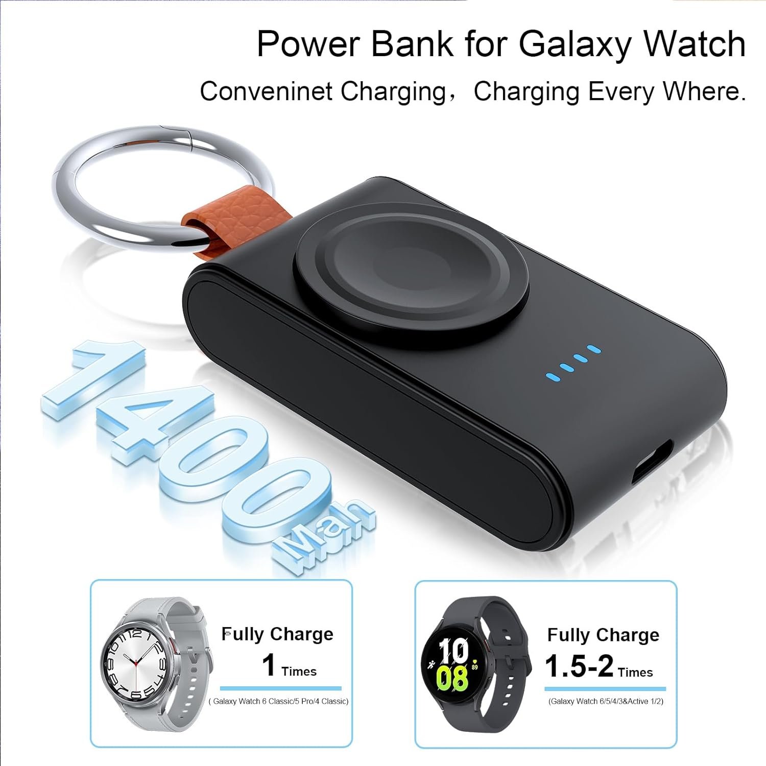 Portable and Travel Friendly – Our Samsung Watch keychain charger features a tiny size, portable and compact design. With a powerful 1400mAh battery capacity, you can trust that your Samsung watch will be fully charged and ready for use wherever you are. Whether you’re going on a business trip or a vacation, our Samsung watch charger is a must-have travel companion that guarantees convenience and peace of mind.
