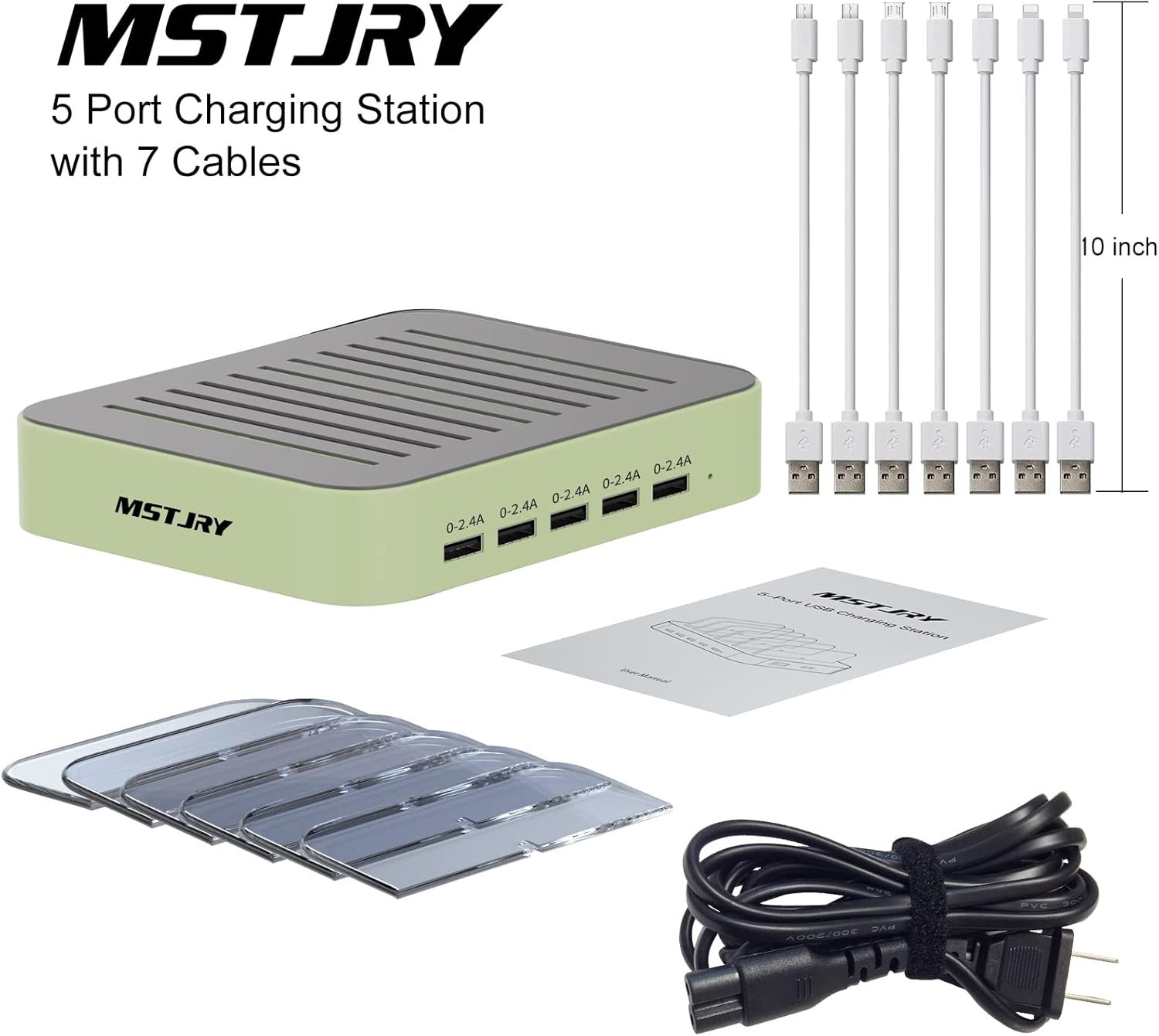 Be the first to review “Charging Station for Multiple Devices, MSTJRY 5 Port Multi USB-A Charger Station with Power Switch Designed for iPhone iPad Cell Phone Tablets (Cyan, 7 Mixed Short Cables Included)”