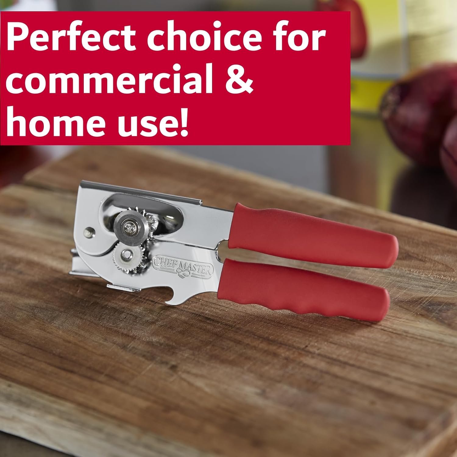 Oversized Turn Knob – Ease of use is at the forefront of the Chef Master Can Opener’s design, and the oversized turn knob represents it.Metal Construction -The use of durable and resilient metal ensures that this can opener can withstand the rigors of frequent use.Sharp Cutting Disks – The Chef Master Can Opener effortlessly slices through can lids, providing a smooth and efficient operation.Anti-Slip Grip – The comfortable grips ensure a secure and confident hold, preventing accidental slips during use.Easy to Clean – The easy-to-clean design simplifies maintenance, allowing you to focus on your passion for cooking rather than tedious cleanup tasks.Comfortable Grips – The ergonomic design ensures that your hands feel at ease, even during prolonged use.