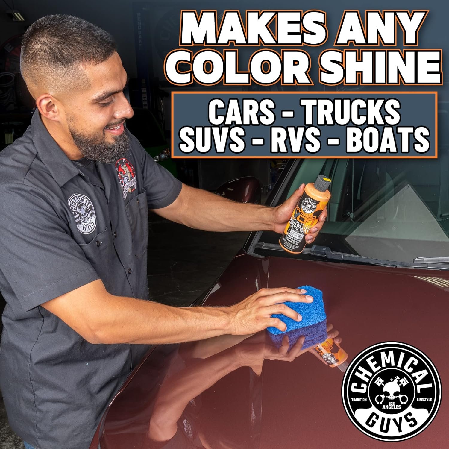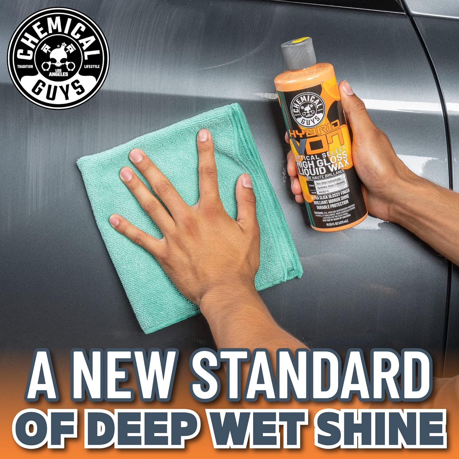 Detailing professionals and hardcore enthusiasts worldwide love the brilliant shine of Hybrid V7 car wash soaps and detail sprays. Now Chemical Guys expands the Hybrid V7 lineup to shield and protect vehicles against harsh elements with Hybrid V7 Optical Select High Gloss Wax. Hybrid V7 Wax blends the durable protective properties of natural carnauba wax with the Optical Select gloss enhancers that made Hybrid V7 a fan-favorite worldwide. Synthetic Hybrid V7 sealant technology extends the durability of the brilliant natural carnauba shine, and helps reject harsh UV sunlight, pollution, and contaminants that destroy shiny paint. That warm wet carnauba wax shine that enthusiasts have loved for over 100 years is getting even better in Hybrid V7 High Gloss Wax. The unique blend of grade A yellow carnauba, white carnauba, and optical select gloss enhancers make any paint color shine to its very limits. With a coat of Hybrid V7 Wax, warm hues like red, orange, and yellow glow and gleam like wet paint; cool colors like blue and metallic silver and gray shimmer with brilliant clarity; black and white reflect all light with unfettered purity; and glossy and metallic finishes show pure reflection, or highlight every individual sparkle flake. Detailing professionals and car enthusiasts everywhere have a new favorite go-to wax. Shine, enhance, and protect any paint color with the signature bold luster of Chemical Guys Hybrid V7 Optical Select High Gloss Wax.