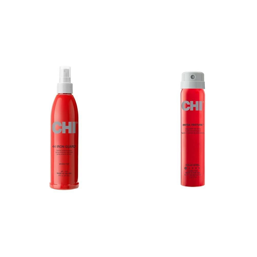 Contains CHI 44 Iron Guard Thermal Protection Spray for superior heat protection and CHI Infra Texture Dual Hair Spray for versatile styling and long-lasting hold.