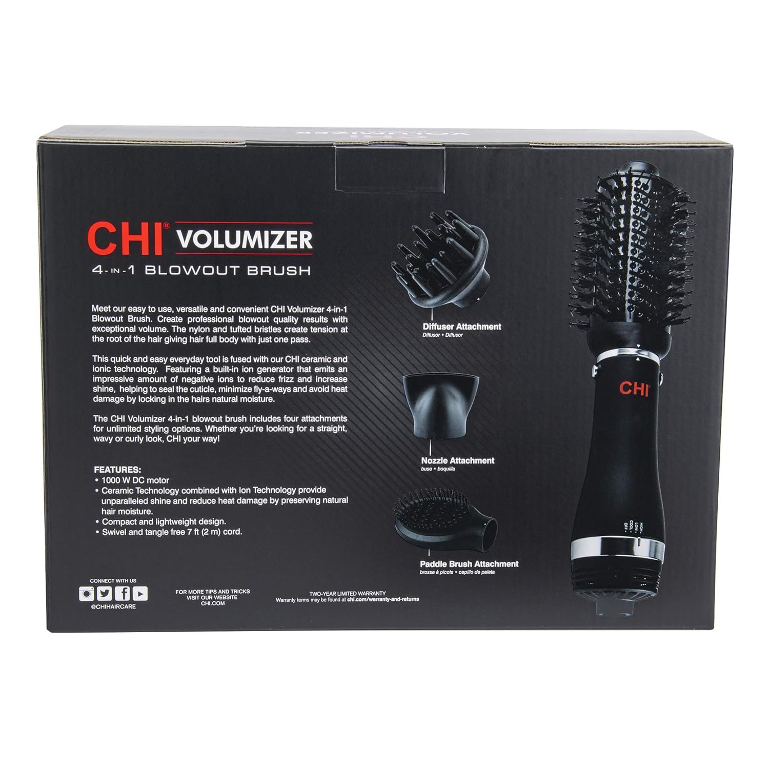 Meet our easy to use, versatile and convenient CHI Volumizer 4-in-1 Blowout Brush. Create professional blowout quality results with exceptional volume. The Nylon and Tufted Bristles create tension at the root of the hair giving hair full body with just one pass. This quick and easy everyday tool is fused with our CHI Ceramic and Ionic Technology. Featuring a built-in Ion Generator that emits an impressive amount of Negative Ions to reduce frizz and increase shine, helping to seal the cuticle, minimize fly-a-ways, and avoid heat damage by locking in the hairs natural moisture. A compact and lightweight design create a comfortable styling experience. The CHI Volumizer 4-in-1 Blowout Brush includes four attachments for unlimited styling options. Whether you’re looking for a straight, wavy, or curly look, CHI your way!