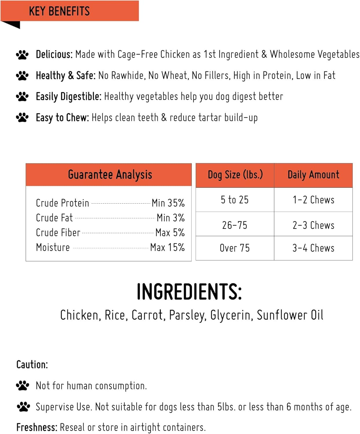 • Safe: No Rawhide. Gluten Free. Wheat Free