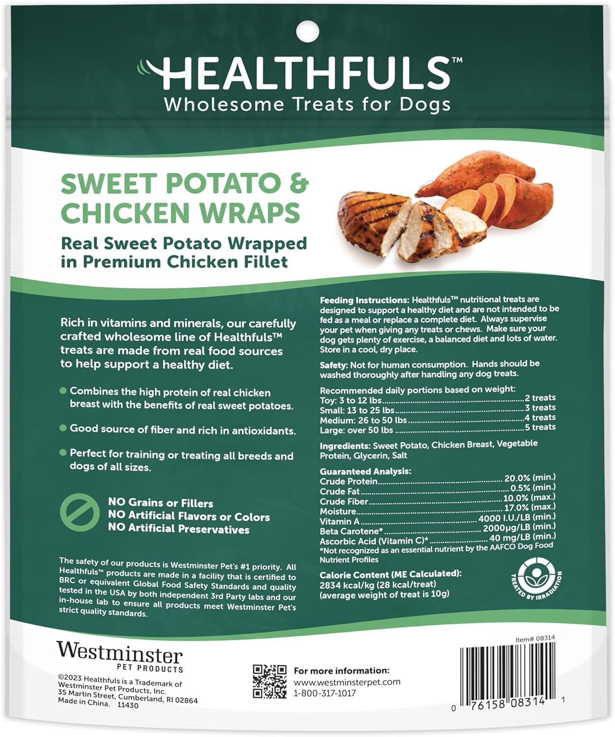 CHICKEN DOG TREATS – Packed with the nutritious goodness of protein and vegetables, Healthfuls Sweet Potato & Chicken Wrapped treats have a natural and sweet flavor that your dog will love.
