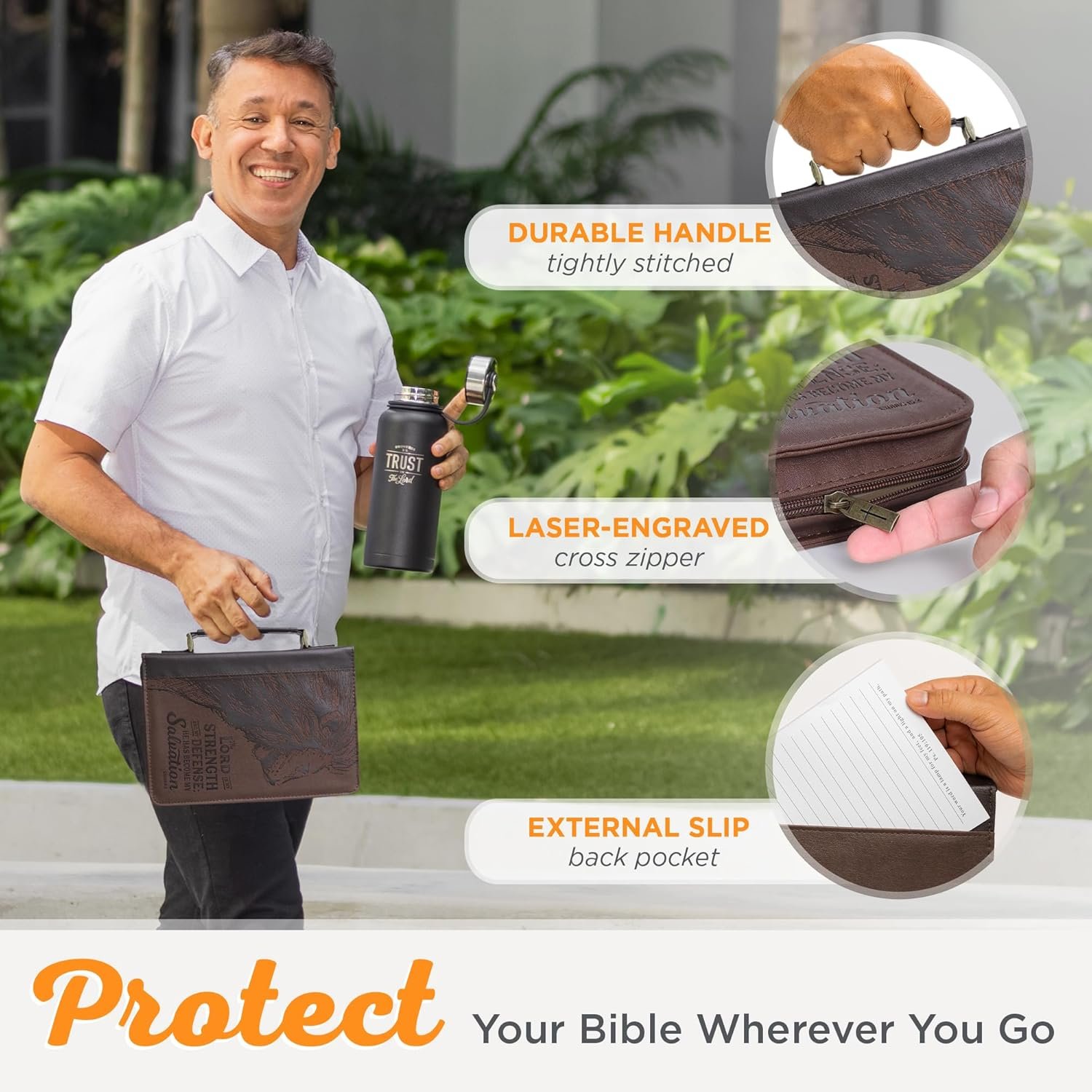 Durable: Protect your Bible from life’s mishaps with this classic brown Bible cover for men and women made from sturdy faux leather material that is easy to clean and will withstand daily wear.