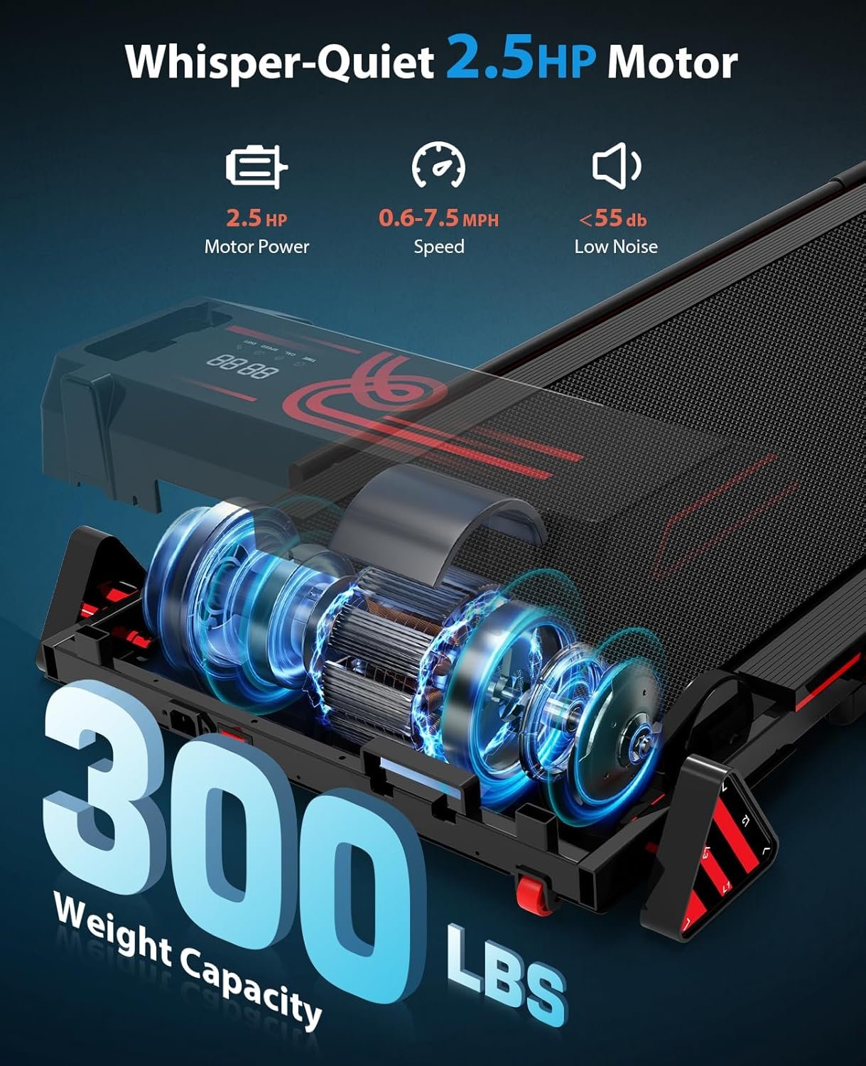 【Easy to Use & Save Space】The portable treadmill is assembly free and ready to use straight out of the box. It’s ideal for home, apartment, or office. When folded, it measures 24.8″ D x 52.2″ W x 4.7″ H. This compact under desk treadmill won’t hog space in your home. With two front wheels, you can effortlessly move and stash it under a table, bed, or couch.